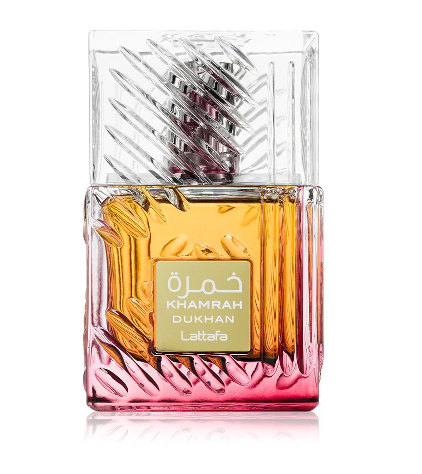 The oriental-spicy Lattafa Khamrah Dukhan Eau de Parfum combines intense spice aromas with smoky and gourmand elements to create a powerful fragrance for both women and men. The top note opens with a spicy-fresh blend of mandarin and allspice, which quickly transitions into a warm heart of frankincense, patchouli, and orange blossom. The base unfolds with rich notes of tobacco, amber, tonka bean, praline, and benzoin, lending the fragrance depth and a mystical warmth.