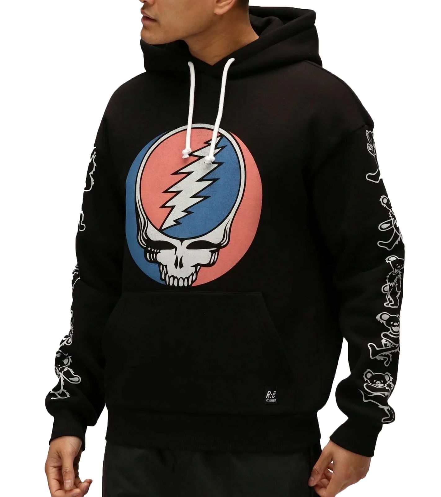 RE:COVERED X Grateful Dead Men's Hoodie with Band Logo Print, Cotton Hoodie, Long-Sleeved Shirt, RCWBROS170, Black