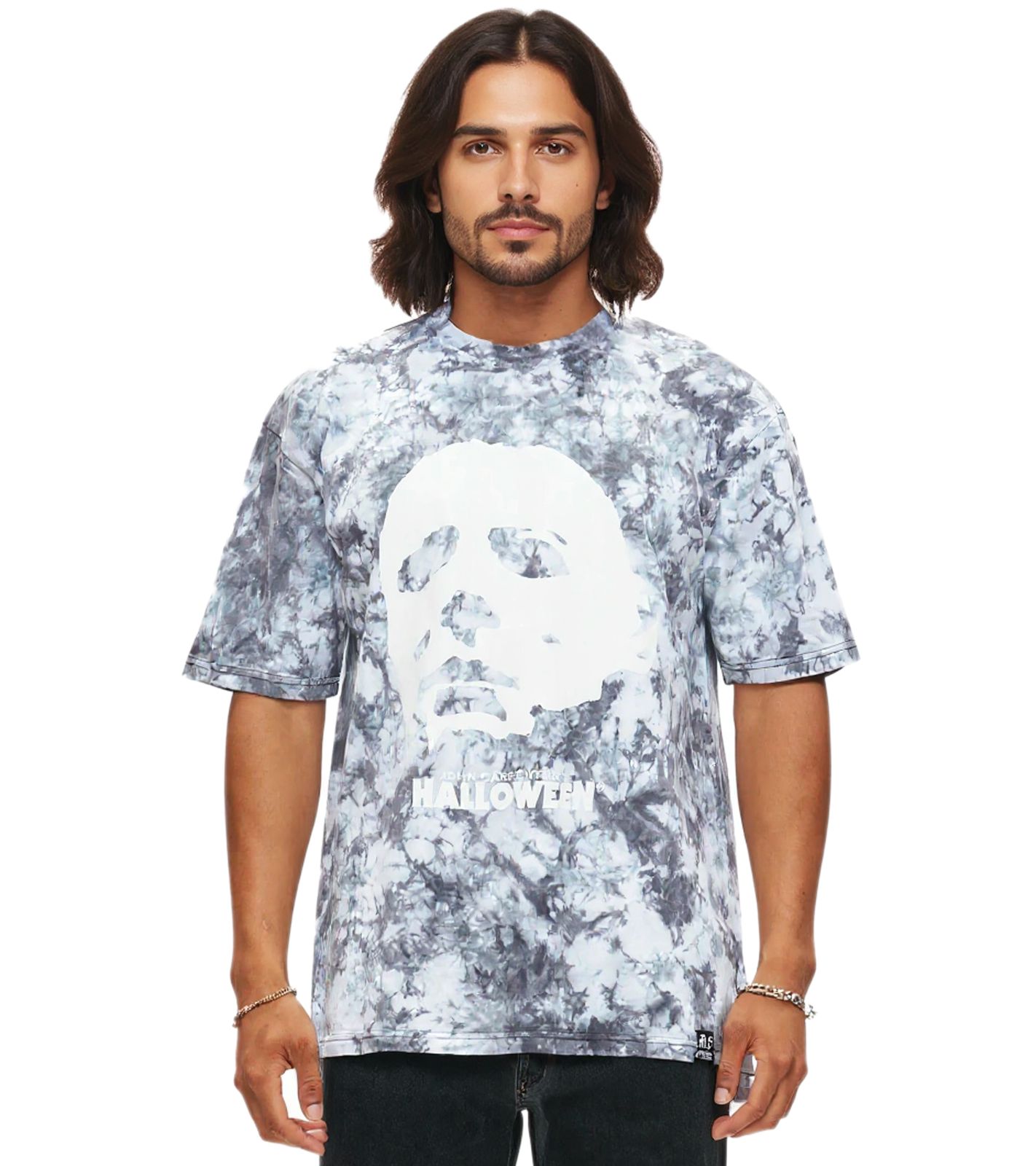 RE:COVERED X John Carpenter's Halloween Men's Tie-Dye T-Shirt, Crew Neck, Fan Shirt, RCSTC117, Gray/White