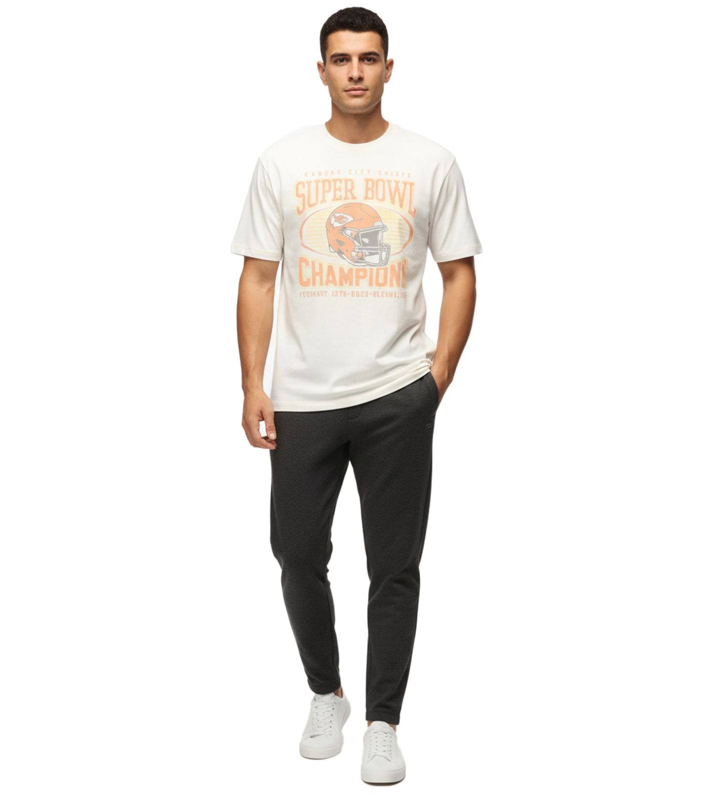 RE:COVERED X NFL Kansas City Chiefs Men's T-Shirt with Champions Print, Cotton Shirt RCNFL1559, Ecru-White