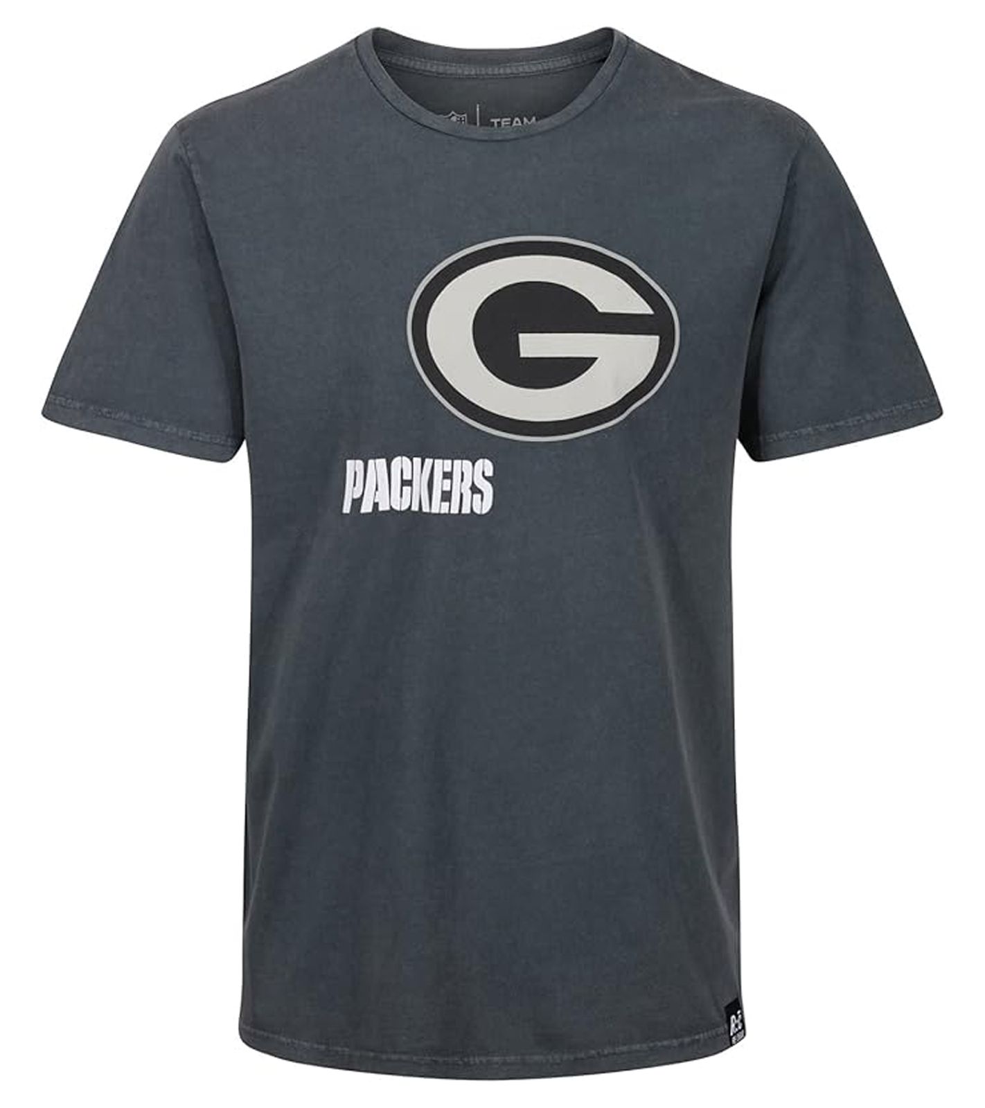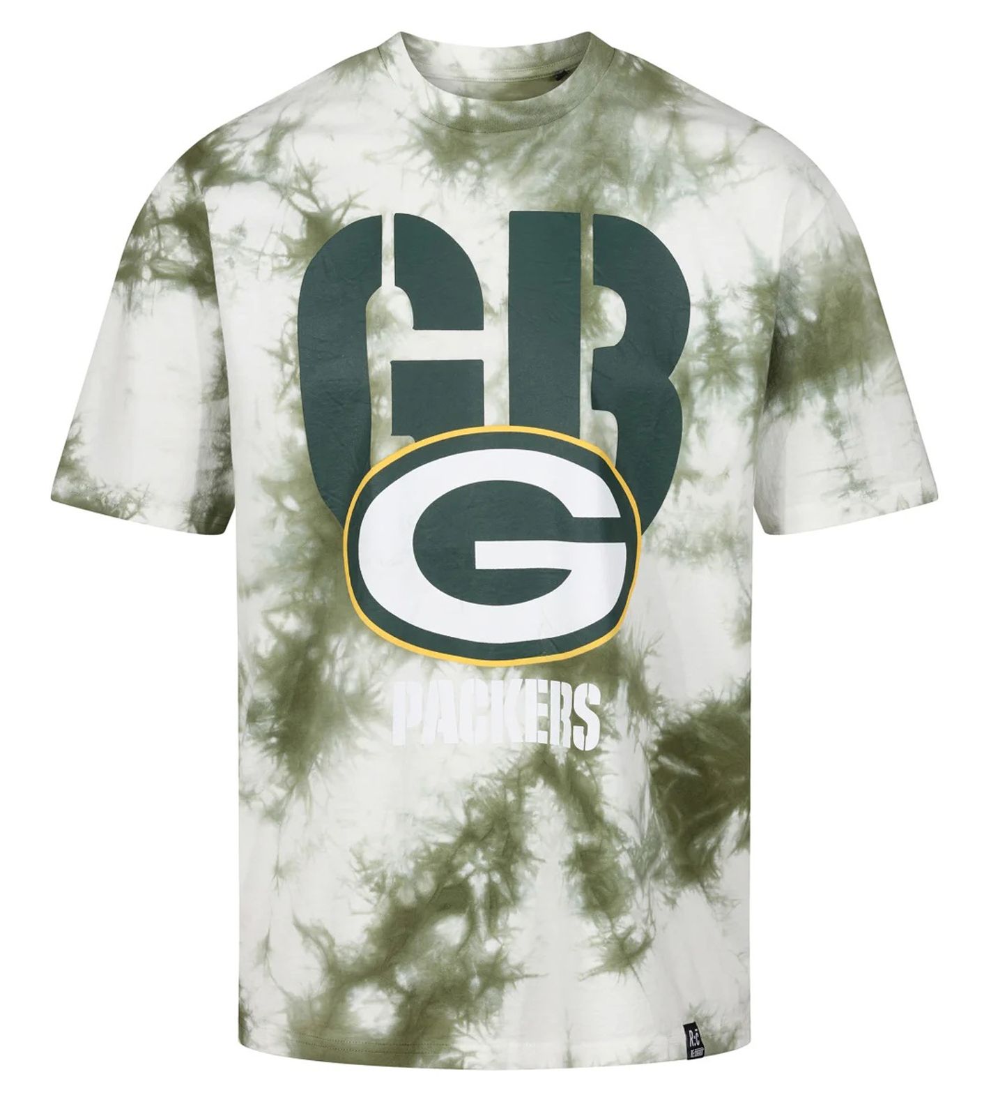 RE:COVERED X NFL Men's T-Shirt with Green Bay Packers Logo Print, Cotton Crew Neck in Gray or Tie-Dye Green/White