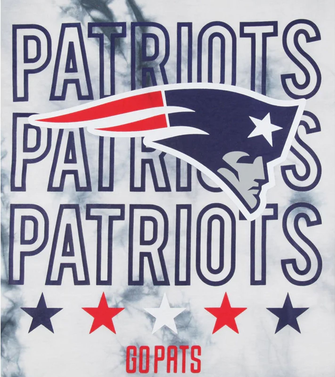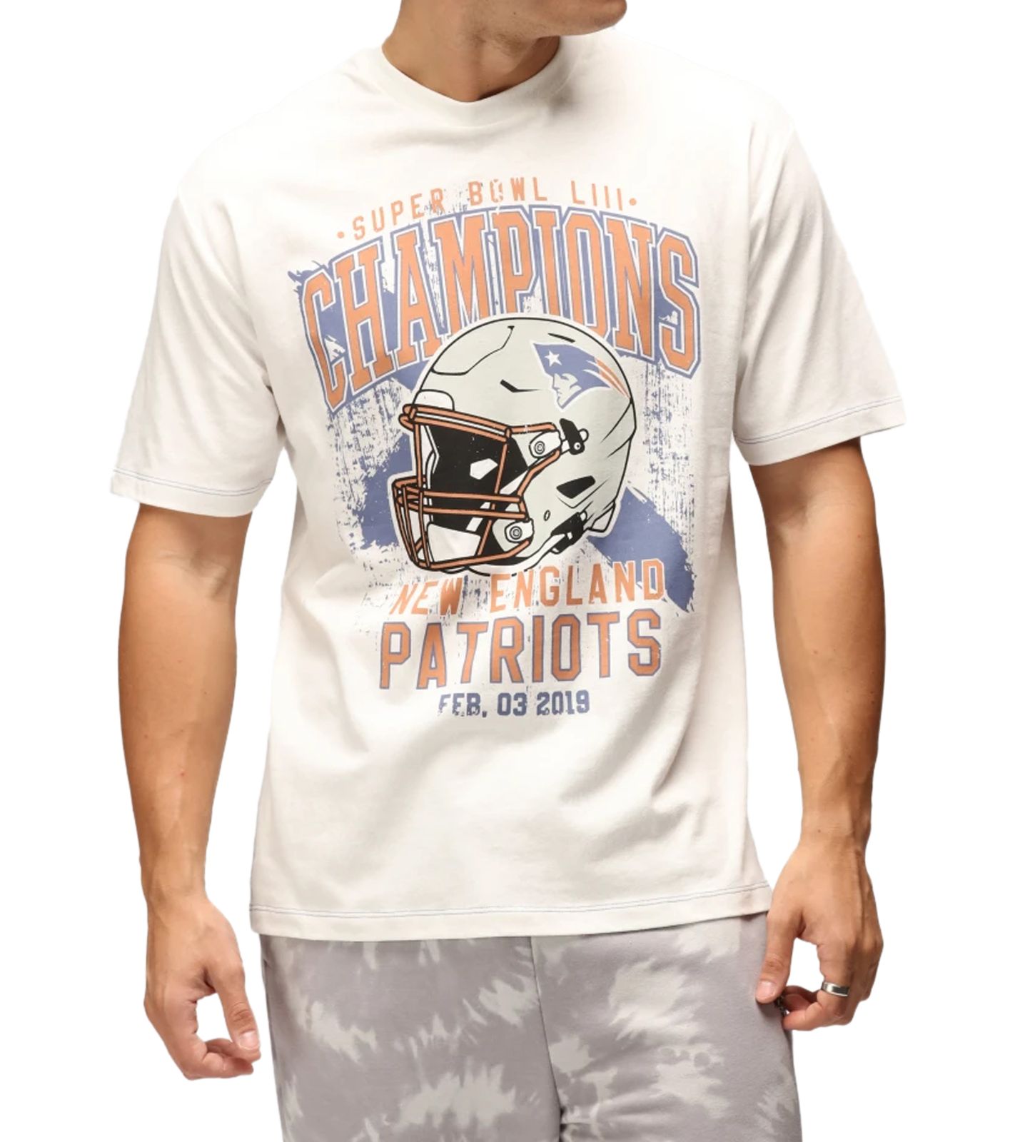 RE:COVERED X NFL New England Patriots Men's T-Shirt, Cotton Shirt in Ecru White or Tie-Dye Blue