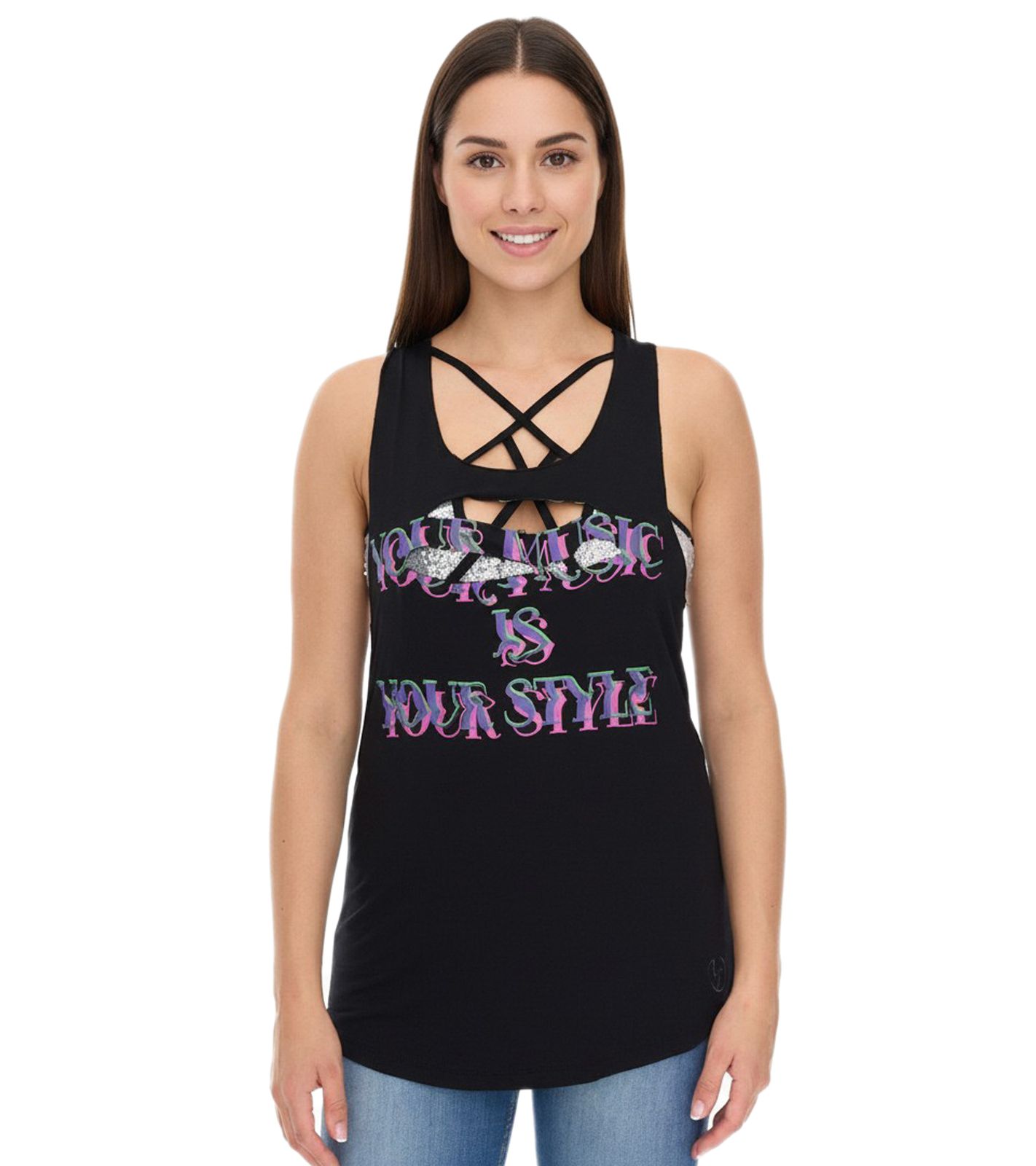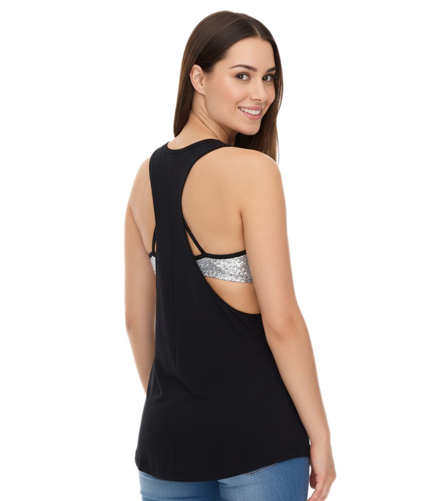 ROCKUPY Women's Tank Top with Glitter Bra, Summer Shirt, Round Neck Top, W100102018 Black