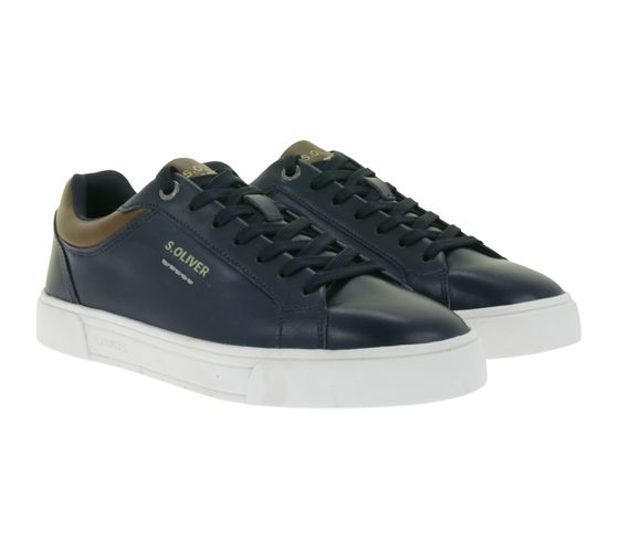 s.Oliver Men's Low Top Sneakers with Embossed Logo, Genuine Leather Shoes 5-13604-43 805 Dark Blue