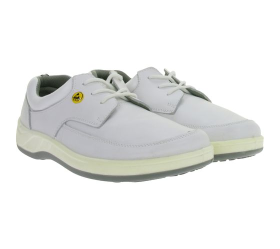 Slip-resistant hsm men's work lace-up shoes, ESD-compliant, genuine leather, SRA protection class, low-cut, occupational shoes, factory second, B-grade, medical shoes, white