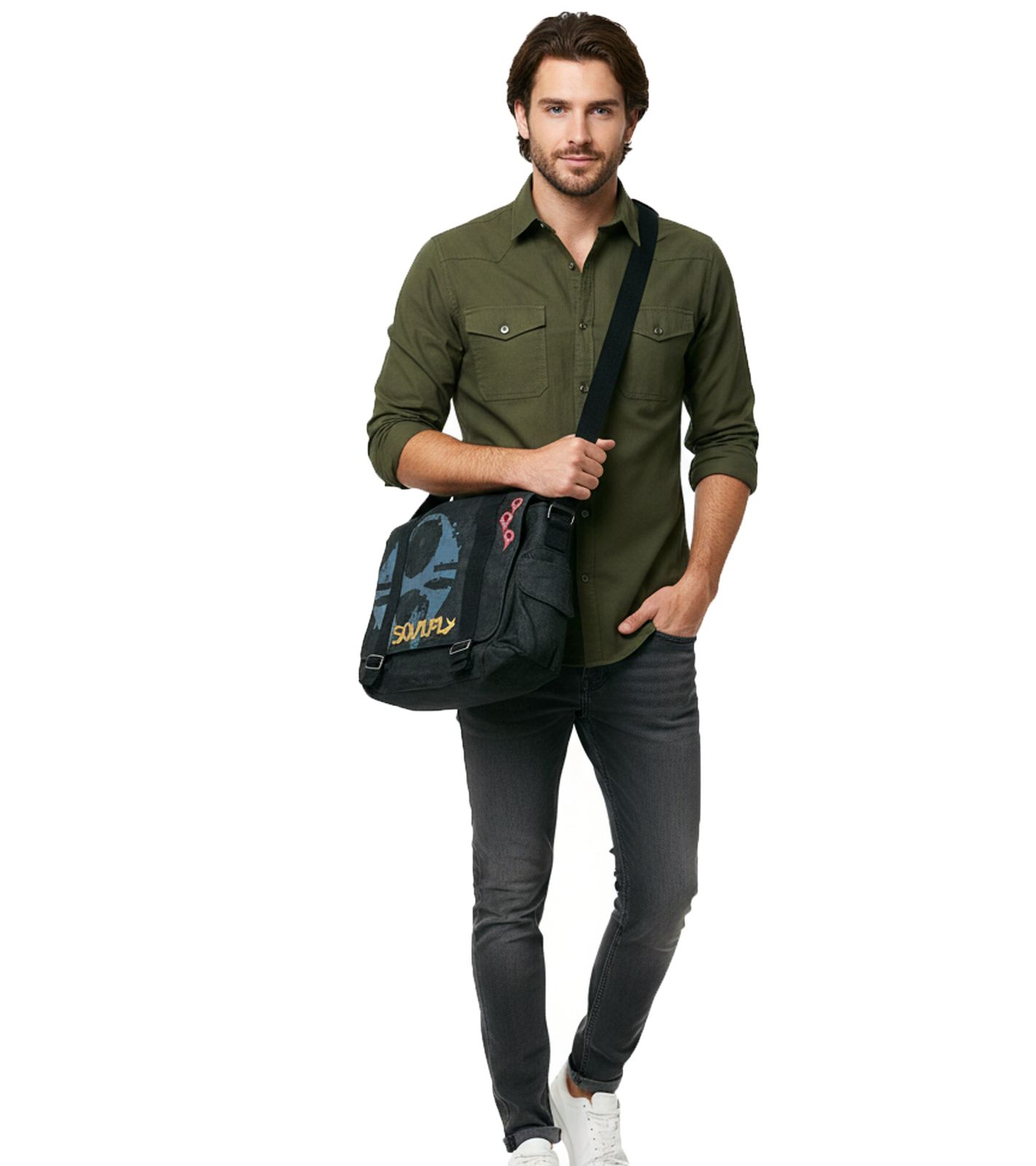 Soulfly Metal Band Messenger Bag with Embroidered Logo, Cotton Accessory, Black