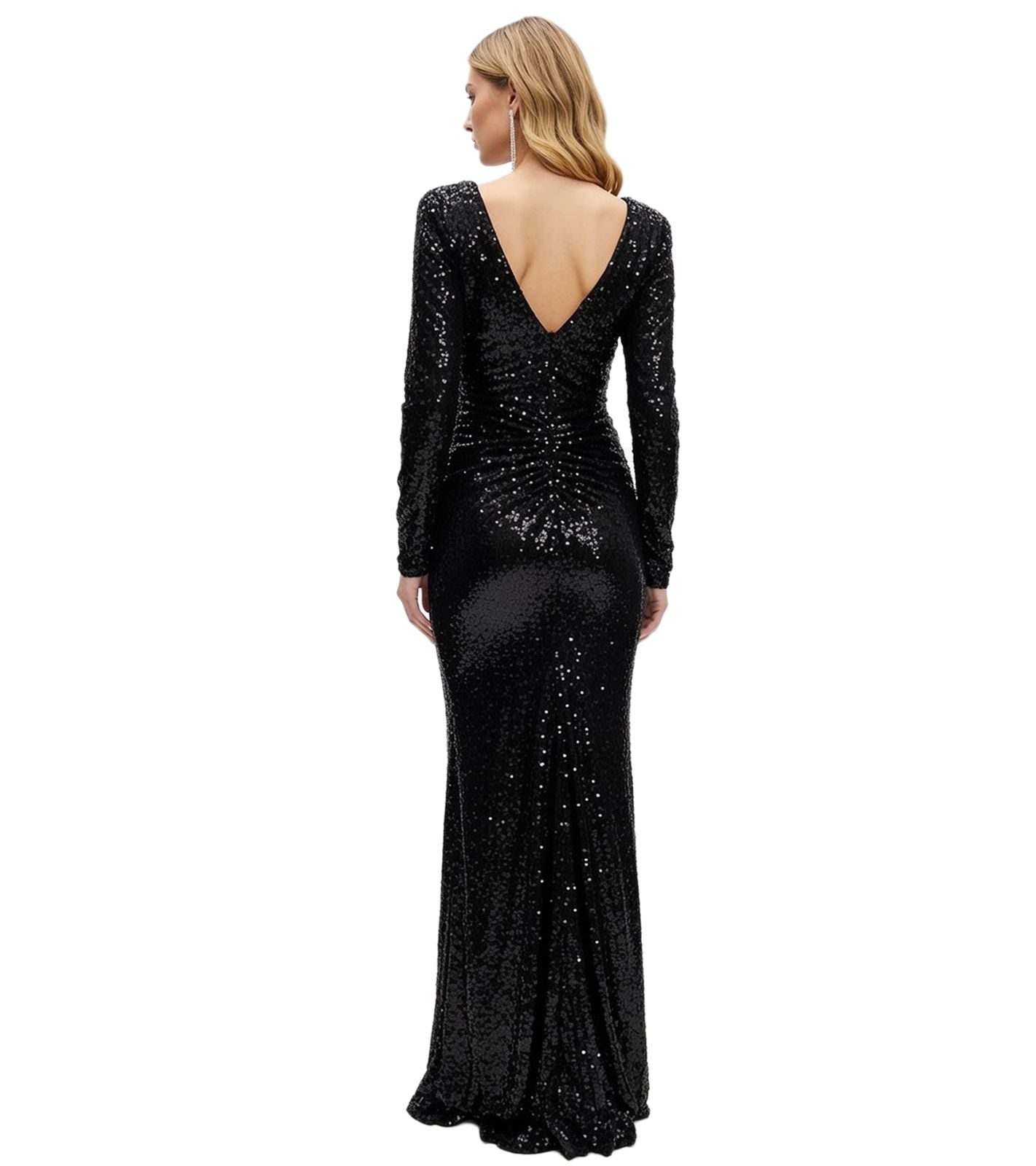 Sparkling Women's Evening Dress, Long-Sleeved Sequin Maxi Dress 950315 Black