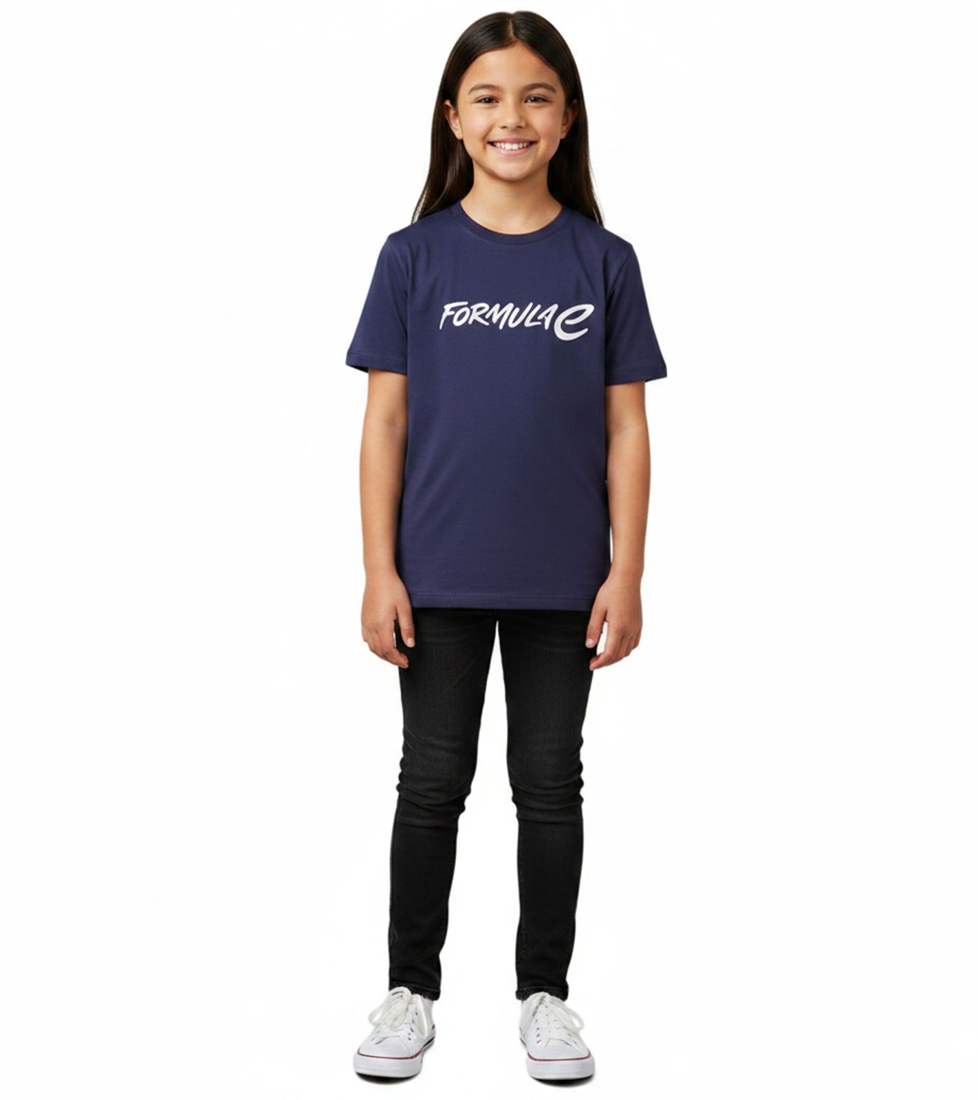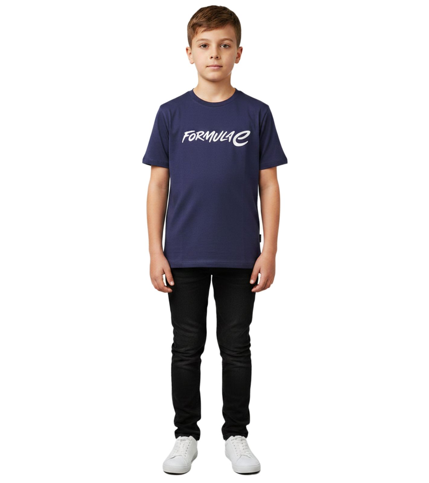 Sporty Formula E Kids' Short-Sleeve T-Shirt, Sustainable Cotton Shirt with Formula E Logo 701223582 001 Navy Blue