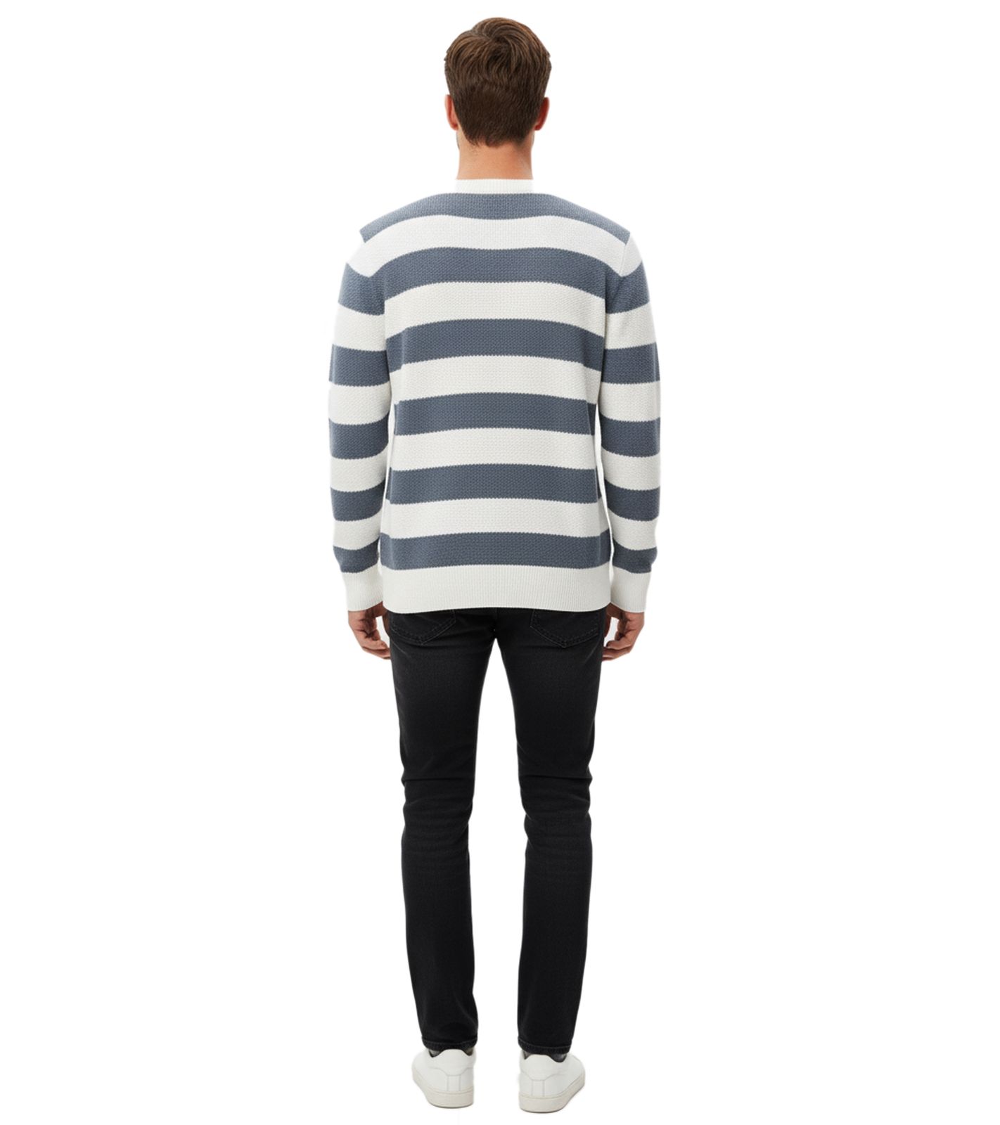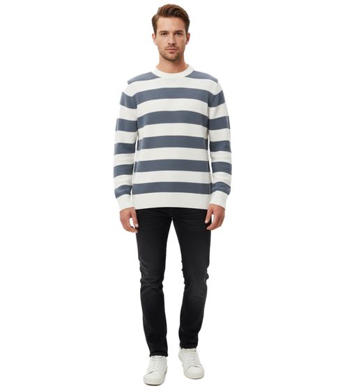 Stylish ESPRIT Men's Striped Knit Sweater, Crew Neck, Cotton Pullover, Blue/White