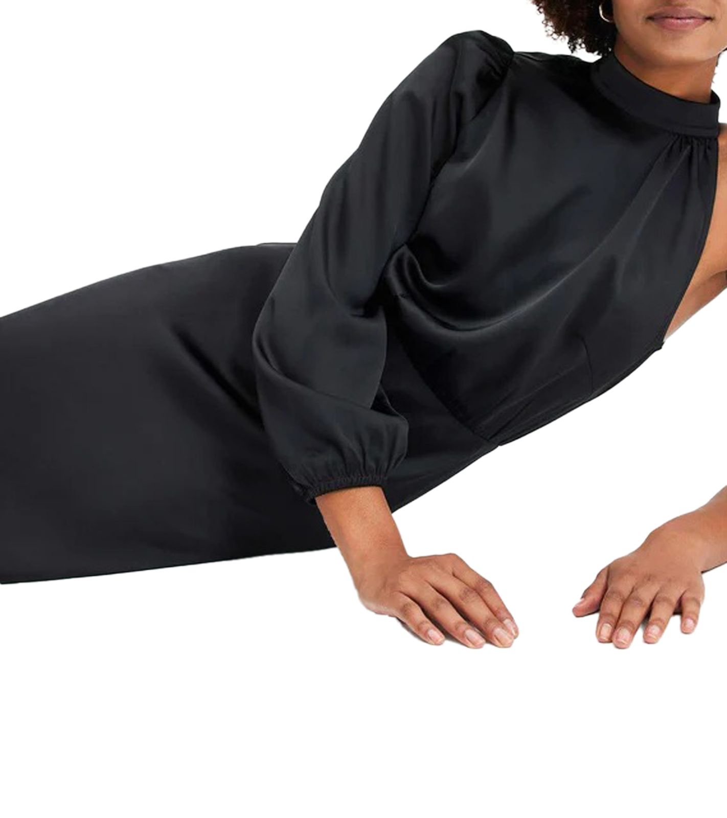 Stylish women's one-shoulder dress made of shiny satin, mini dress, satin dress 919324, black