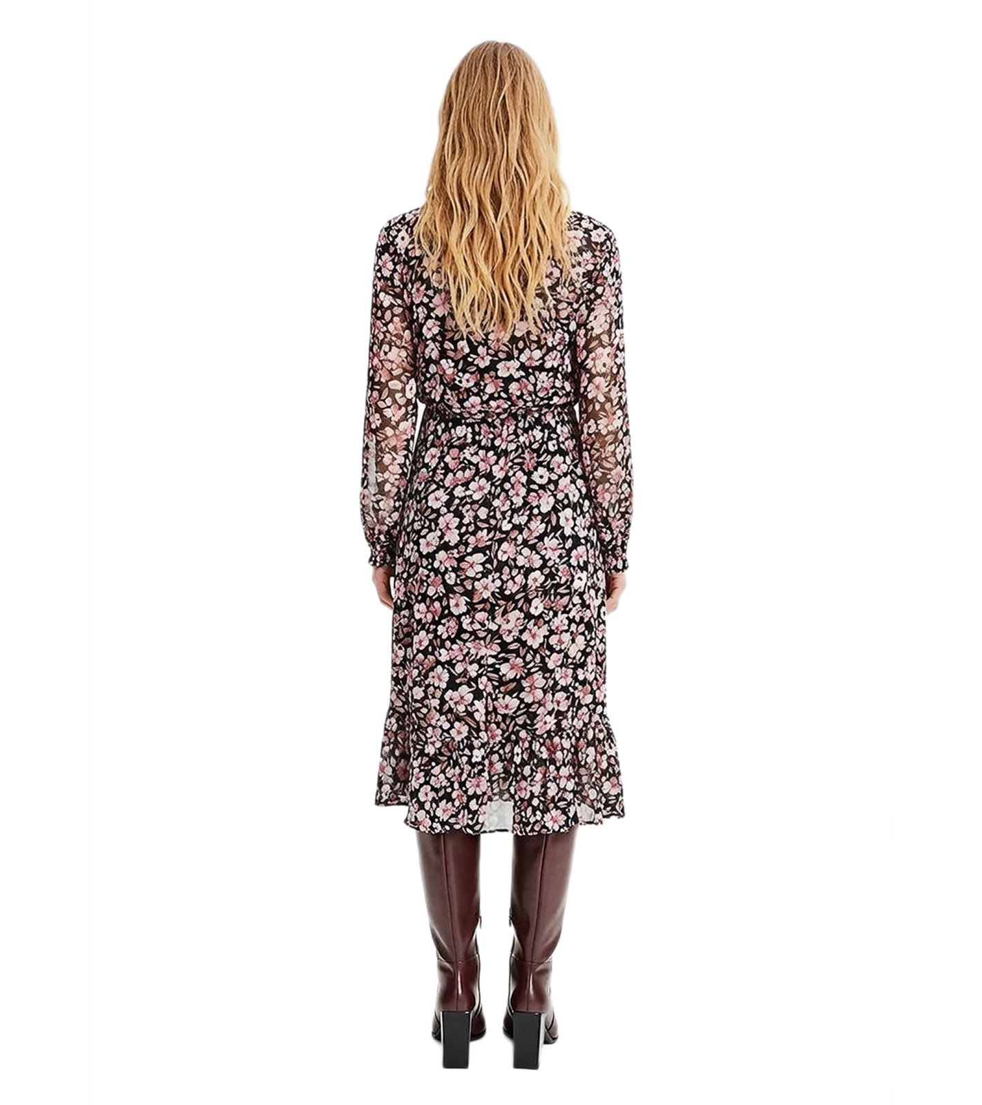 Summery Women's Mini Dress with Floral Pattern Chiffon Dress Plus Sizes 917915 Black/Multicolor