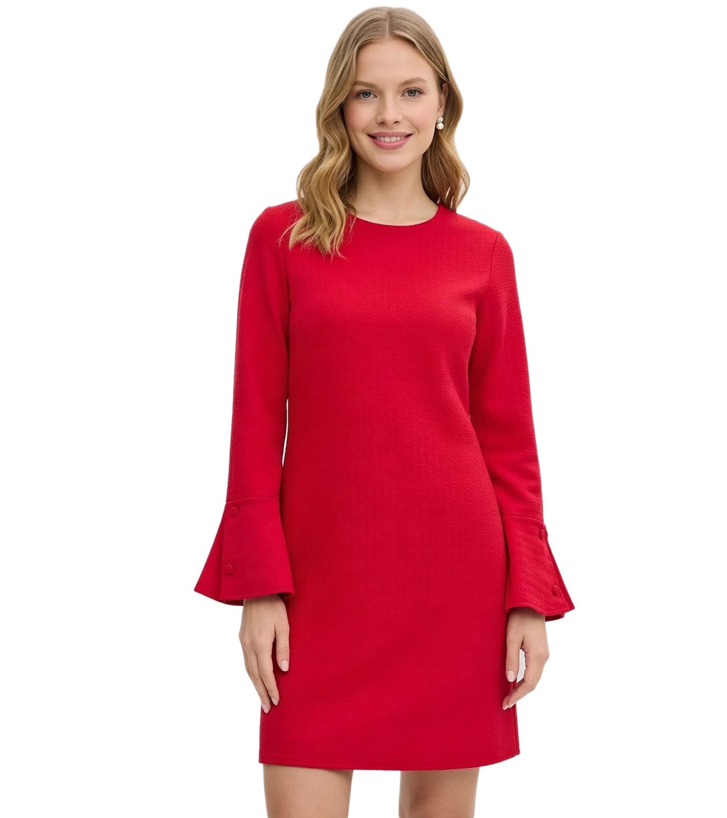 Textured Women's Summer Dress, Mini Dress with Long Sleeves, Vacation Dress 910257 Red
