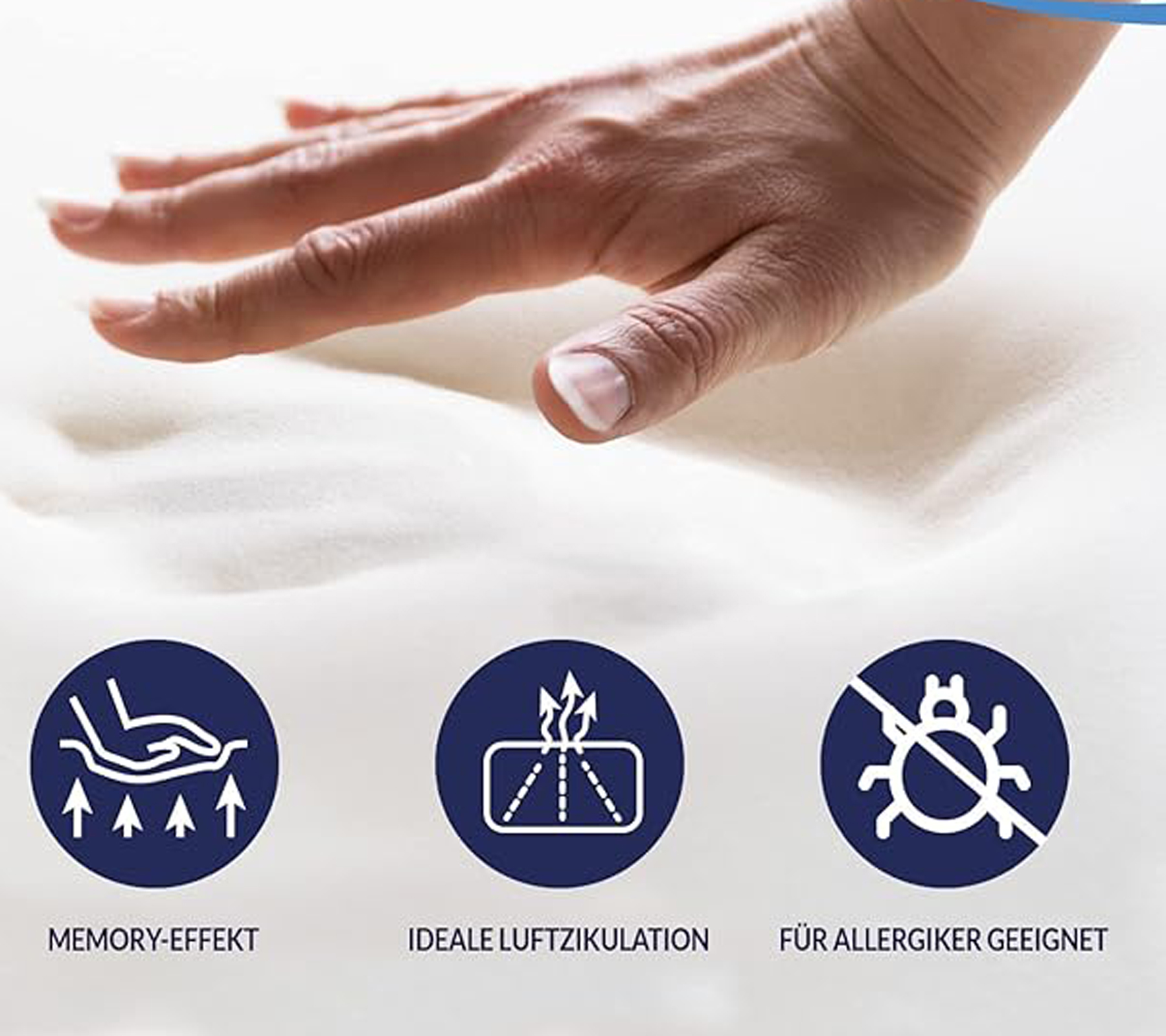 HEALTH FIRST - The memory effect ensures that your head is supported without pressure and in an orthopedically correct position, without putting pressure on your neck, throat, or back.