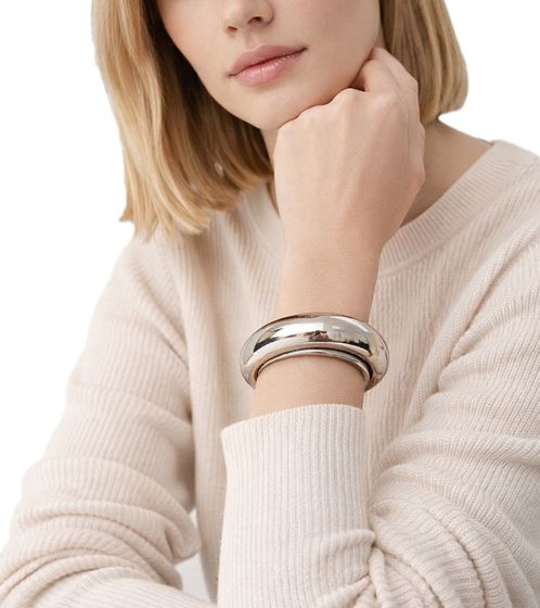 Elegantly designed Calvin Klein Fluid women's bangle in high-quality stainless steel with a smooth, polished finish and iconic CK logo. This minimalist jewelry statement piece is perfect for everyday wear or as a gift.