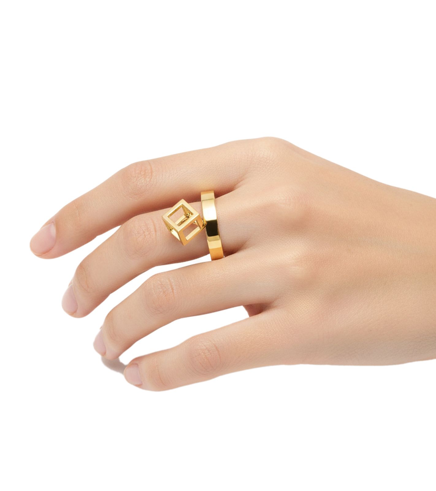 Timeless Calvin Klein Women's Ring with Cube Pendant - Stainless Steel Ring - Gold or Rose Gold