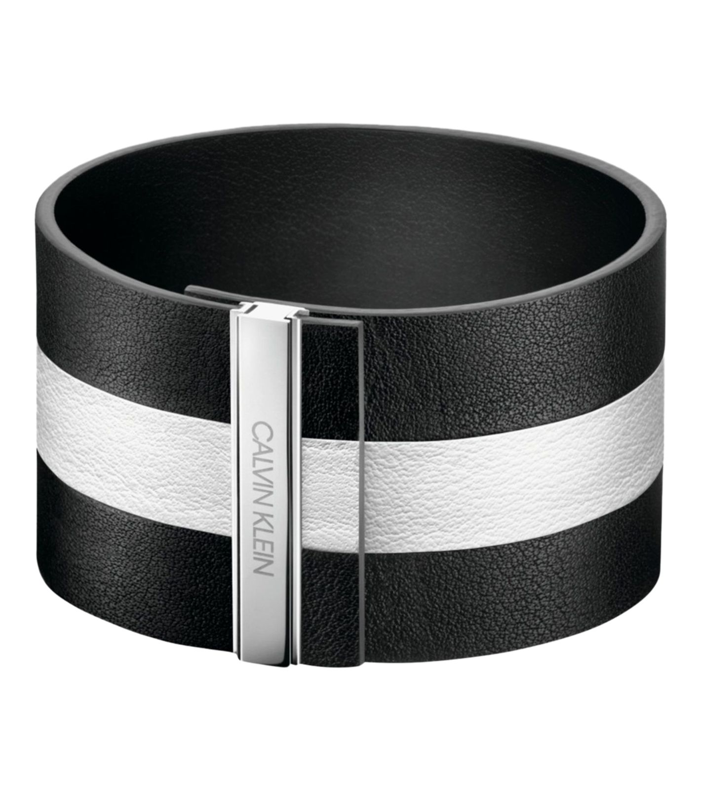 Trendy Calvin Klein women's genuine leather bracelet with a wide contrast stripe. Bracelet size XS (15cm) KJ9K in black, navy, red, or anthracite.