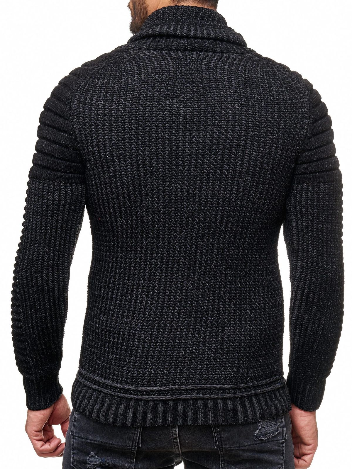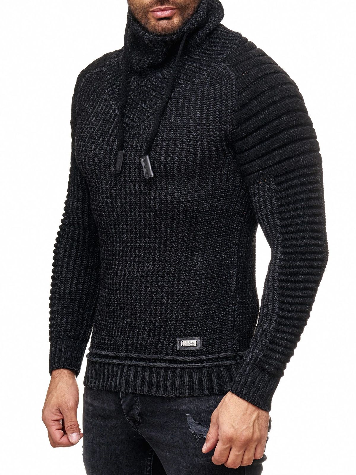 Urban biker stand-up collar sweater, chunky knit sweater with high roll neck 13293 Black