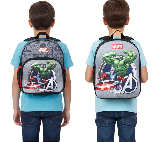 VADOBAG Kids' Backpack in Avengers Design with Hulk and Captain America Print - Daypack, Kindergarten Backpack, 5L, 202-399, Gray