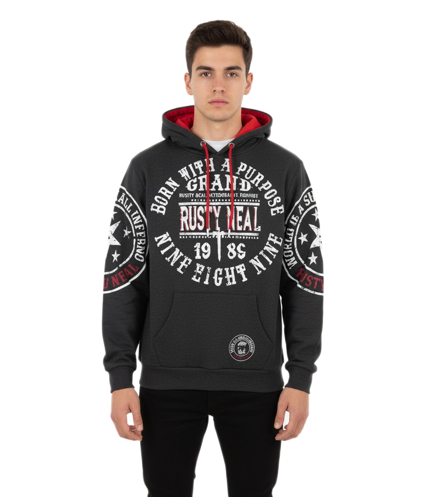 Versatile Men's Hoodie with Cool Brand Prints 19078 Grey