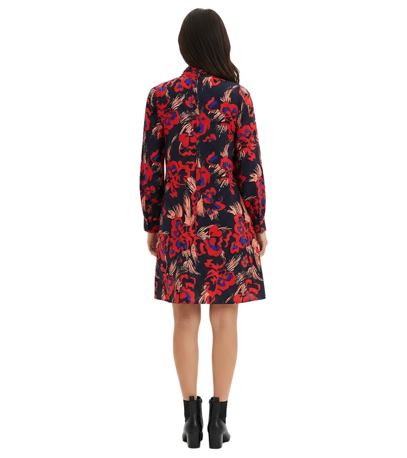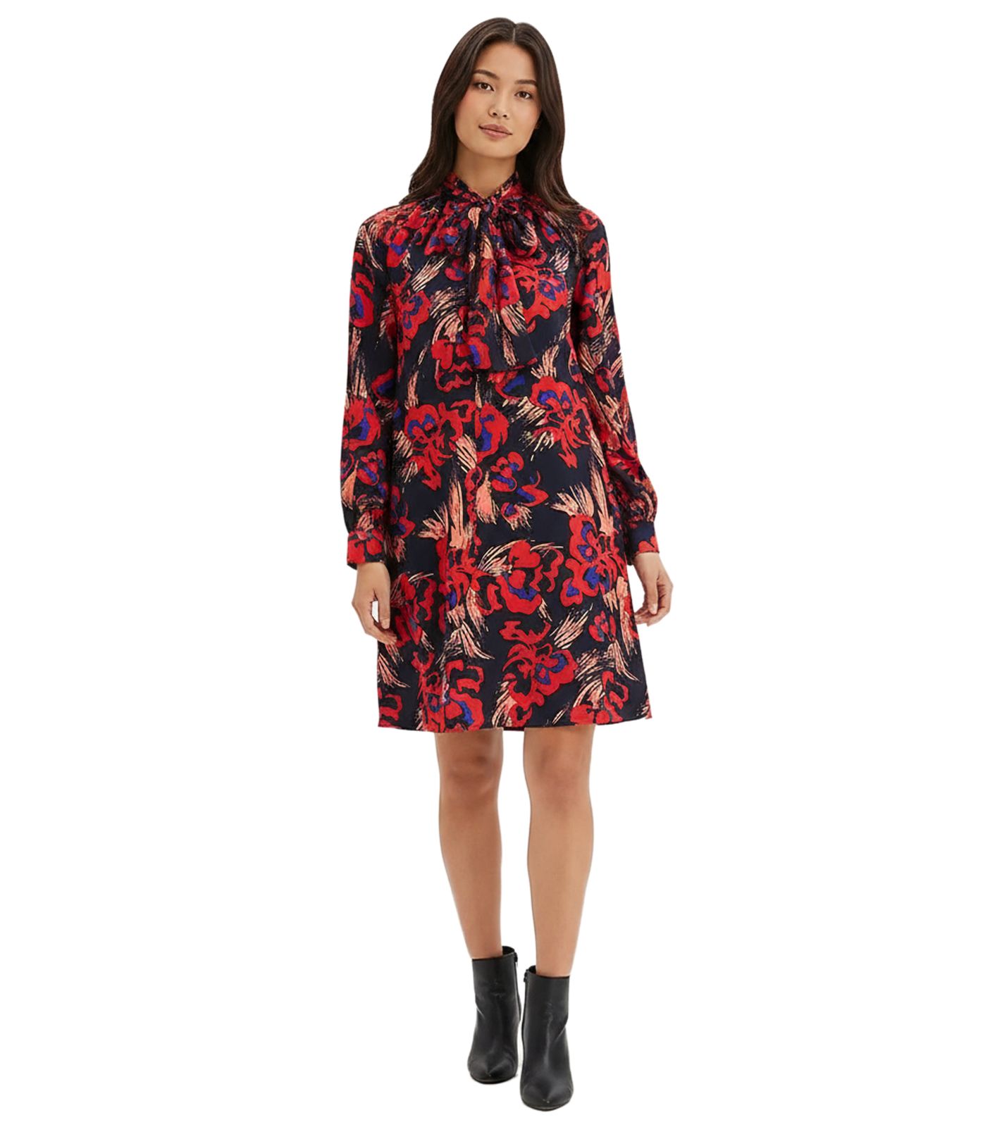 Wide Women's Mini Dress with Floral Print and Tie Neck Chiffon Dress 937133 Blue/Red/Multicolor