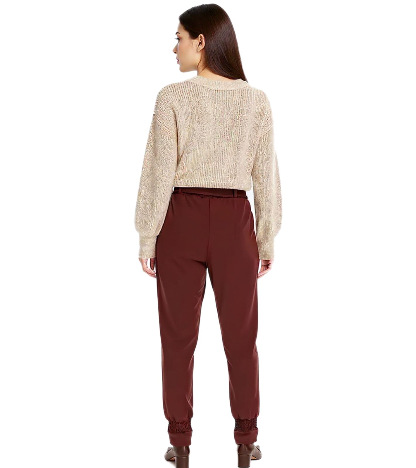 Women's Summer Trousers, Ankle-Length Paperbag Trousers with Tie Belt, 956118 Brown