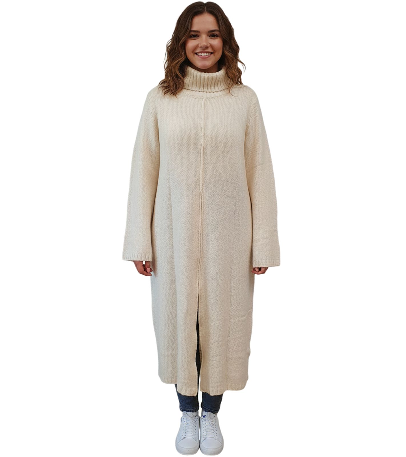 Women's Turtleneck Sweater Dress, Long Knit Sweater 975022 Beige