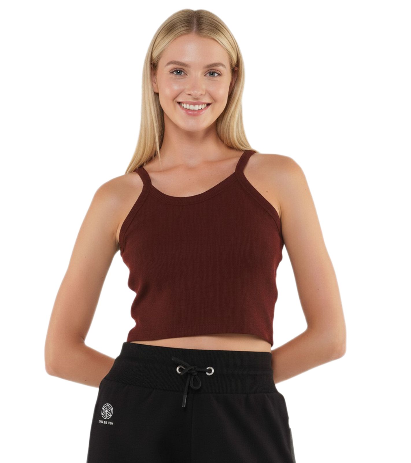 YOU DO YOU women's crop top ribbed fitness top cotton shirt tank top yoga fashion 905101 mahogany brown