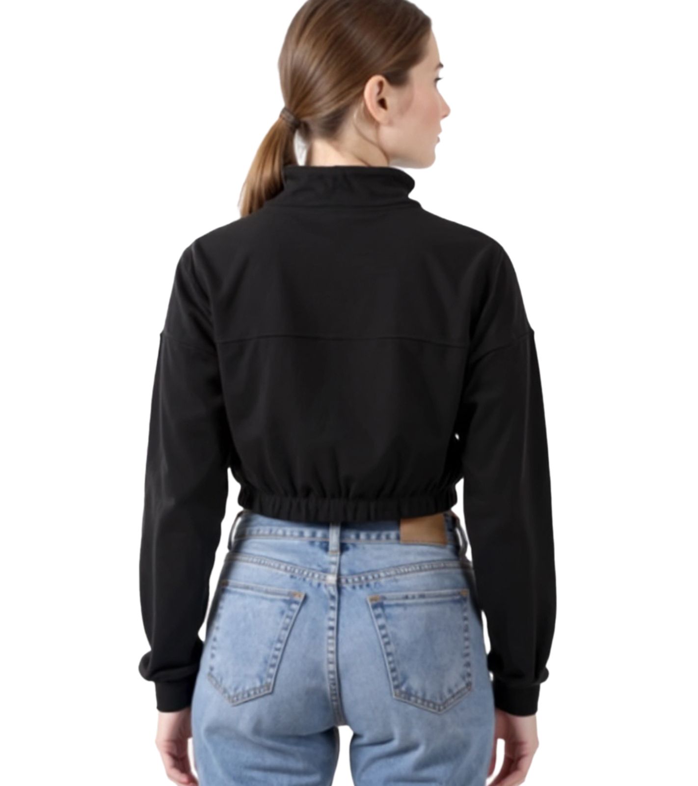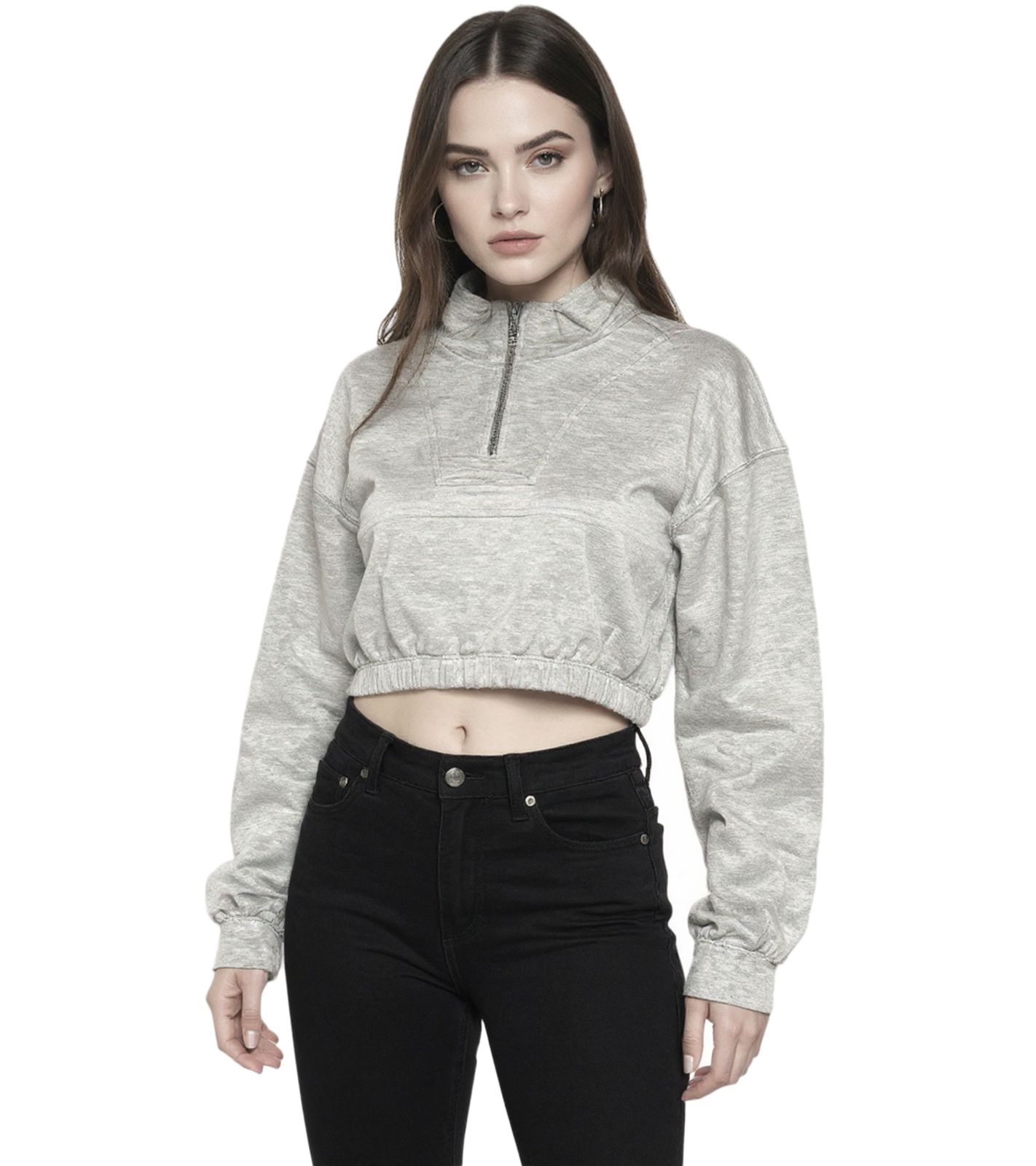 ZEGY Women's Crop Sweater Half Zip Long Sleeve Cotton Cropped Sweater 1073 in White, Black, or Silver