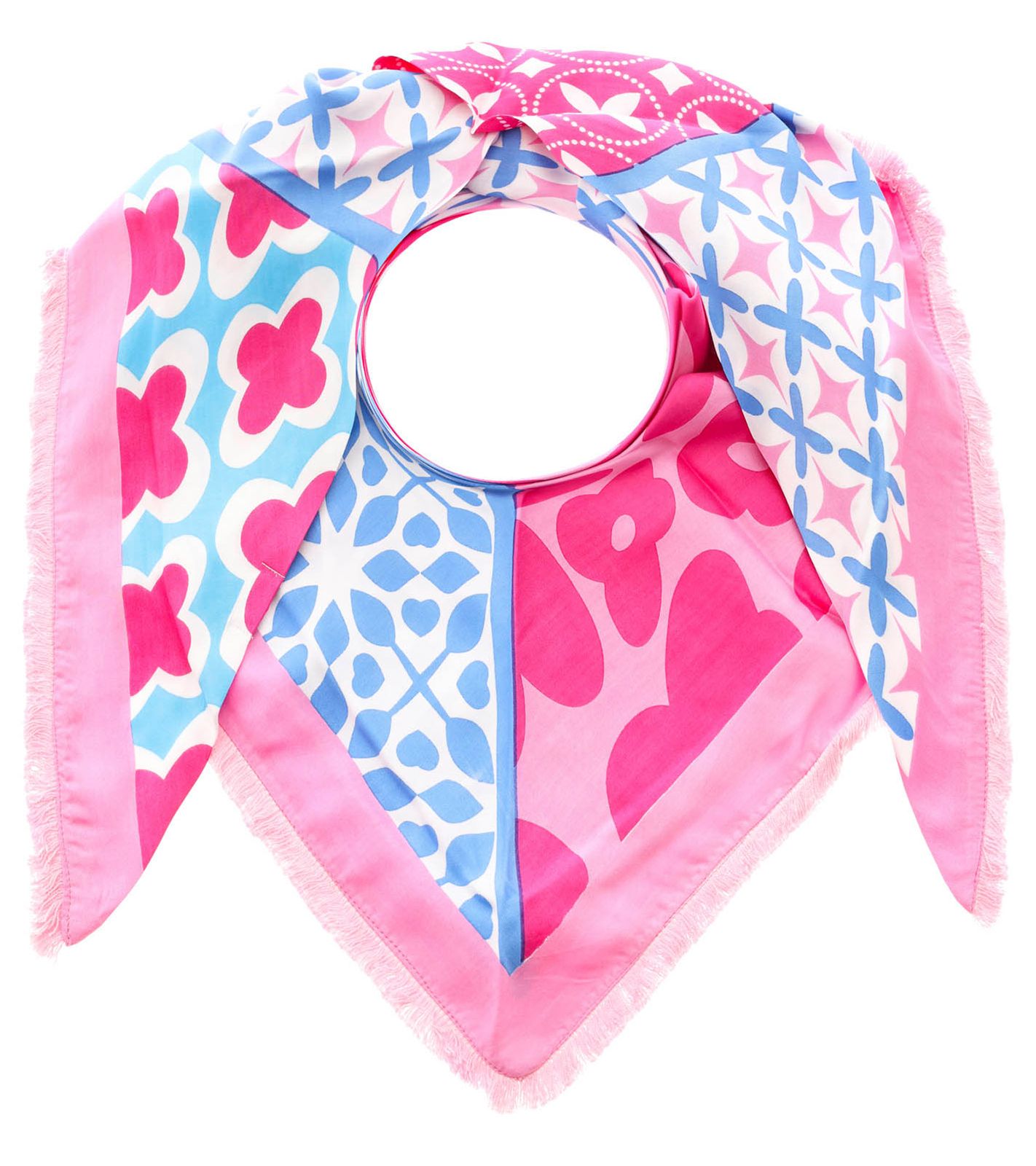 ZWILLINGSHERZ Smile and Shine Triangular Scarf with Floral Pattern and Fringes, Fashion Scarf 3014D-3010-84 Pink/Blue/White
