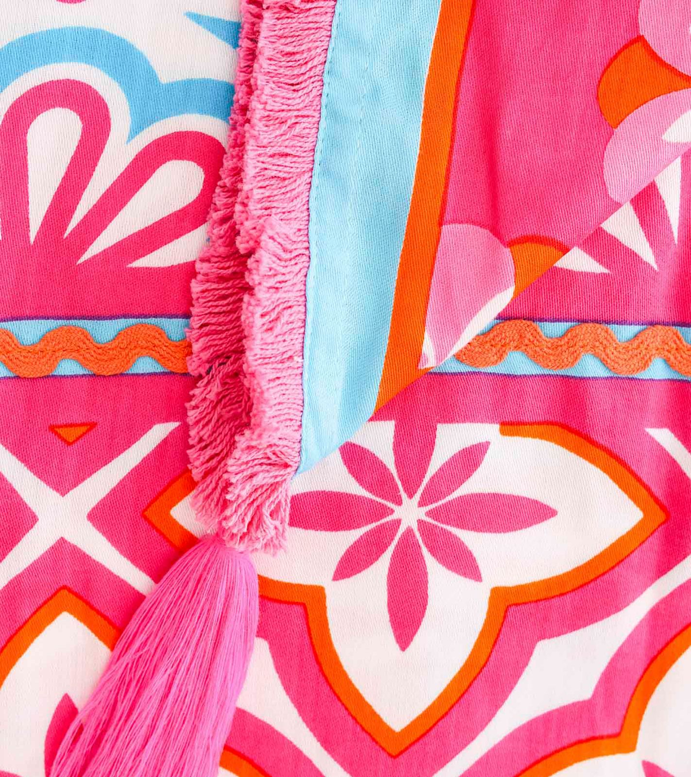 ZWILLINGSHERZ Flower Power Square Scarf with Retro-Look Flowers, Fashion Scarf 3016Q-0609-88 Pink/Turquoise/Multicolored