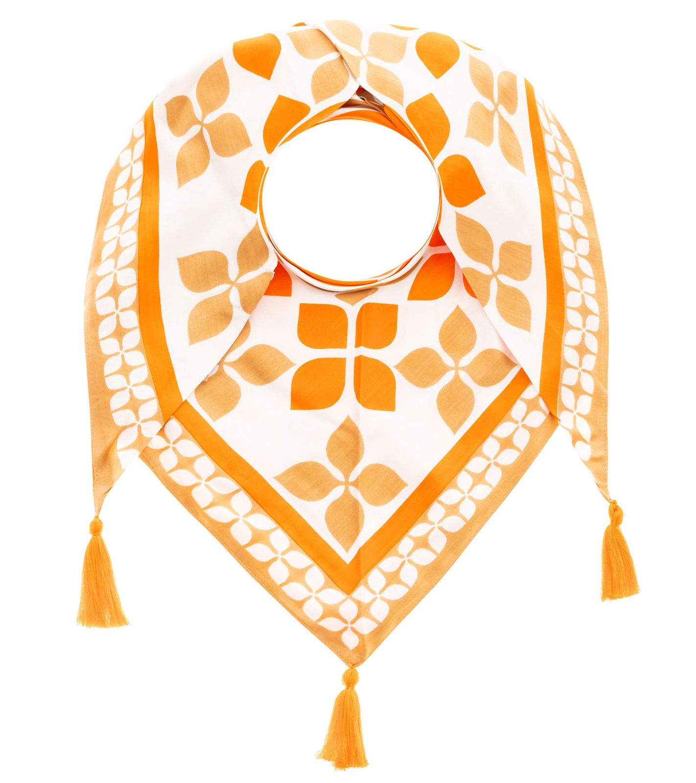 ZWILLINGSHERZ Graphic Print Triangular Scarf with Abstract Floral Pattern, Fashion Scarf 30020-29 Beige/Orange/White