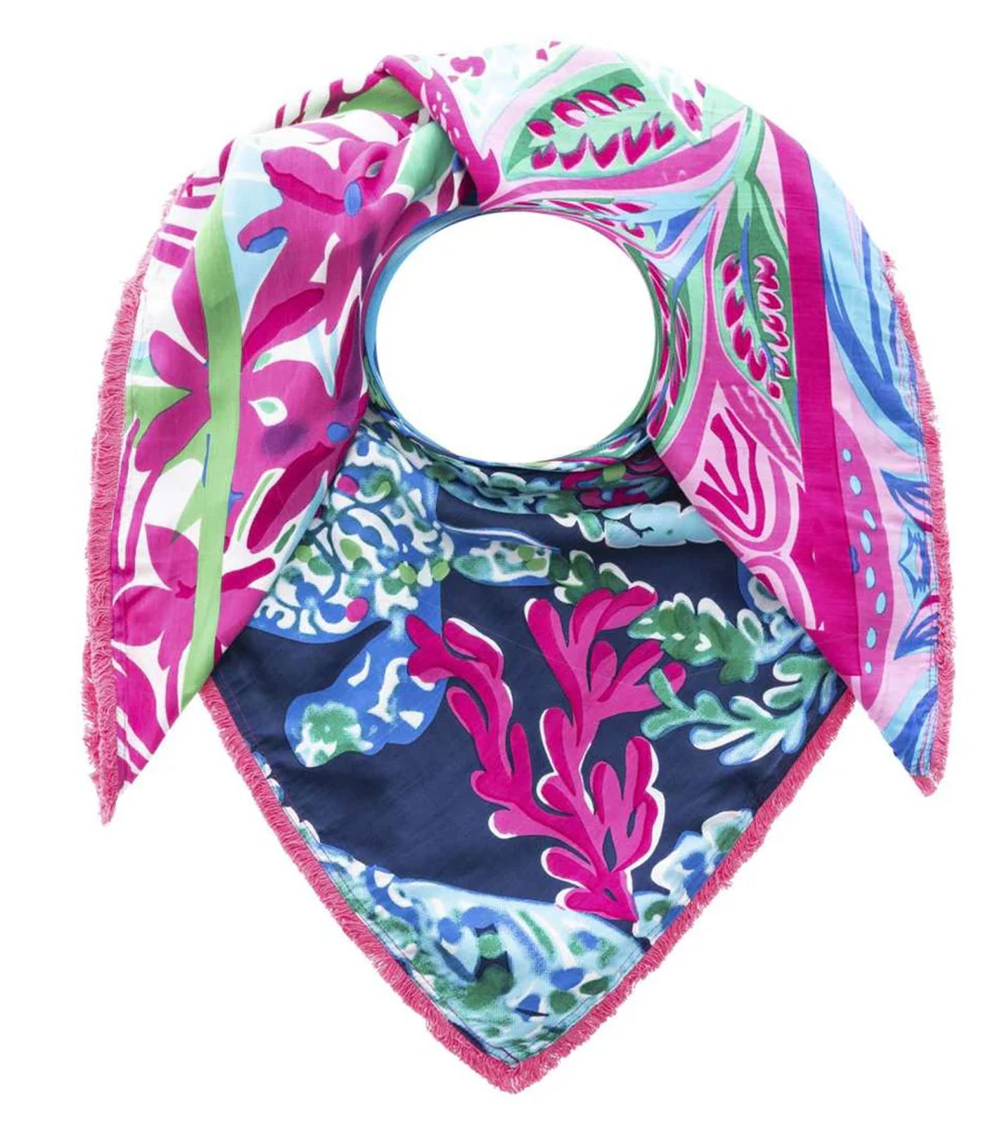 ZWILLINGSHERZ Jungle Mix Square Scarf in a Pattern Mix with Turtles, Flowers, and Corals Fashion Scarf 3016Q-0803-21 Pink/Green/Blue