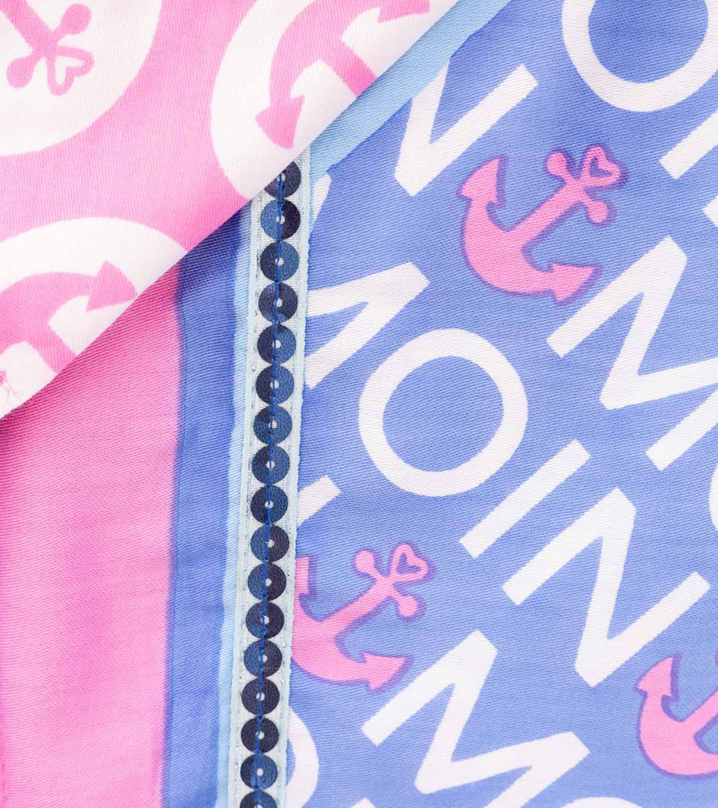 ZWILLINGSHERZ Pattern Mix Triangular Scarf in a Maritime Design with Moin Moin Lettering, Fashion Scarf 3014D-0703-18 Blue/Pink/White