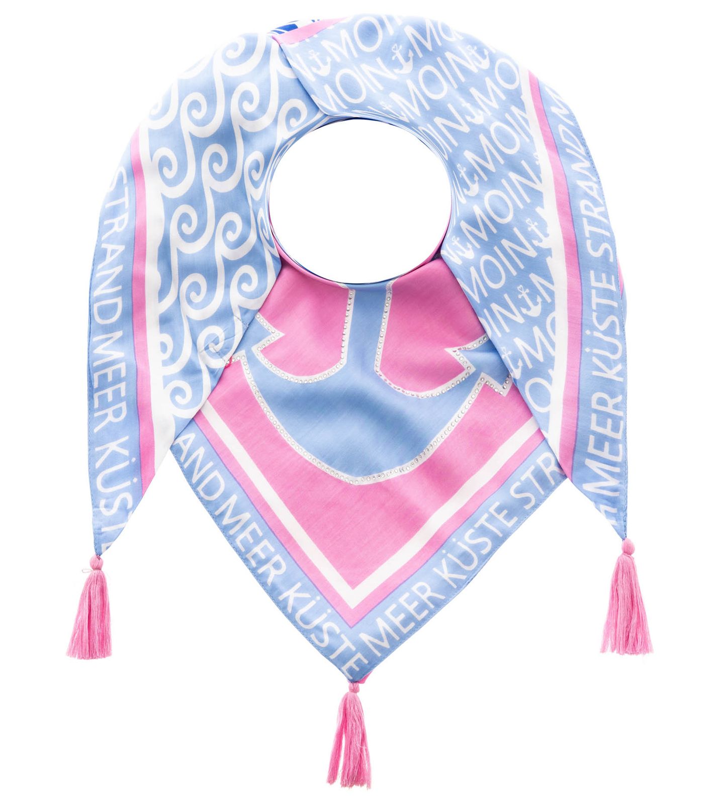 ZWILLINGSHERZ Rhinestone Anchor Triangular Scarf in a Maritime Design and Statement Print Fashion Scarf 3014D-0204-18 Light Blue/Pink/White