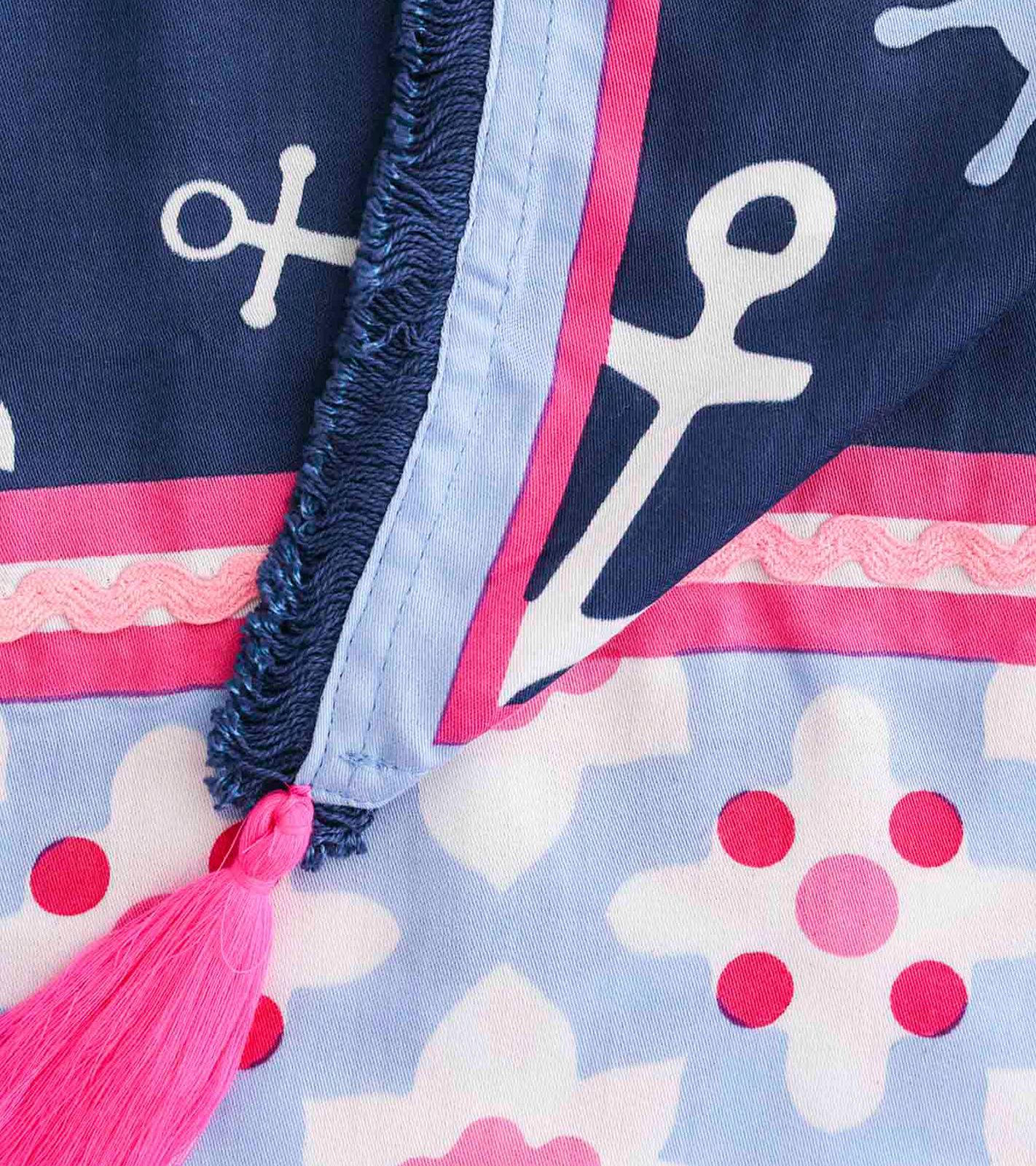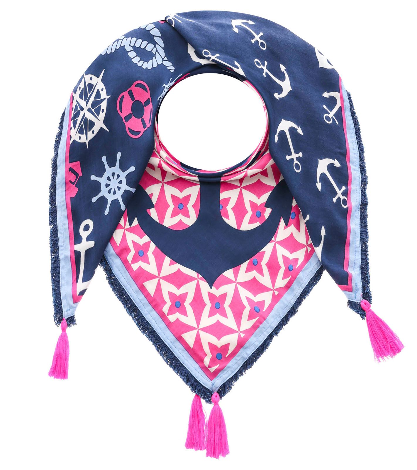 ZWILLINGSHERZ Sea Sun Sand Square Scarf with Anchors and Steering Wheels Lettering Fashion Scarf 3016Q-0629-5 Blue/Pink/White
