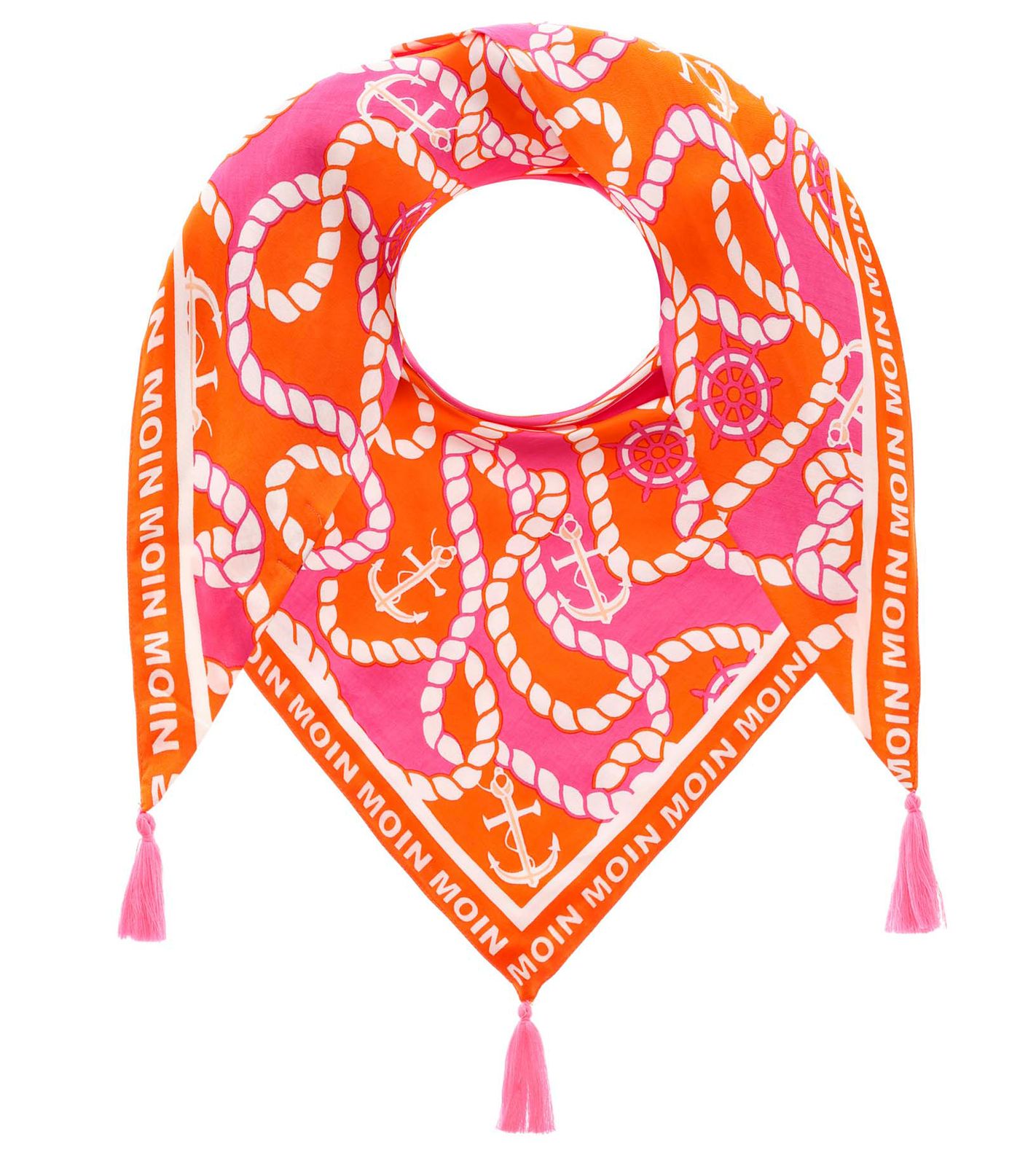 ZWILLINGSHERZ Steering Wheel Triangular Scarf in a Maritime Design with Moin Moin Lettering, Fashion Scarf 3014D-1011-9 Orange/Pink/White
