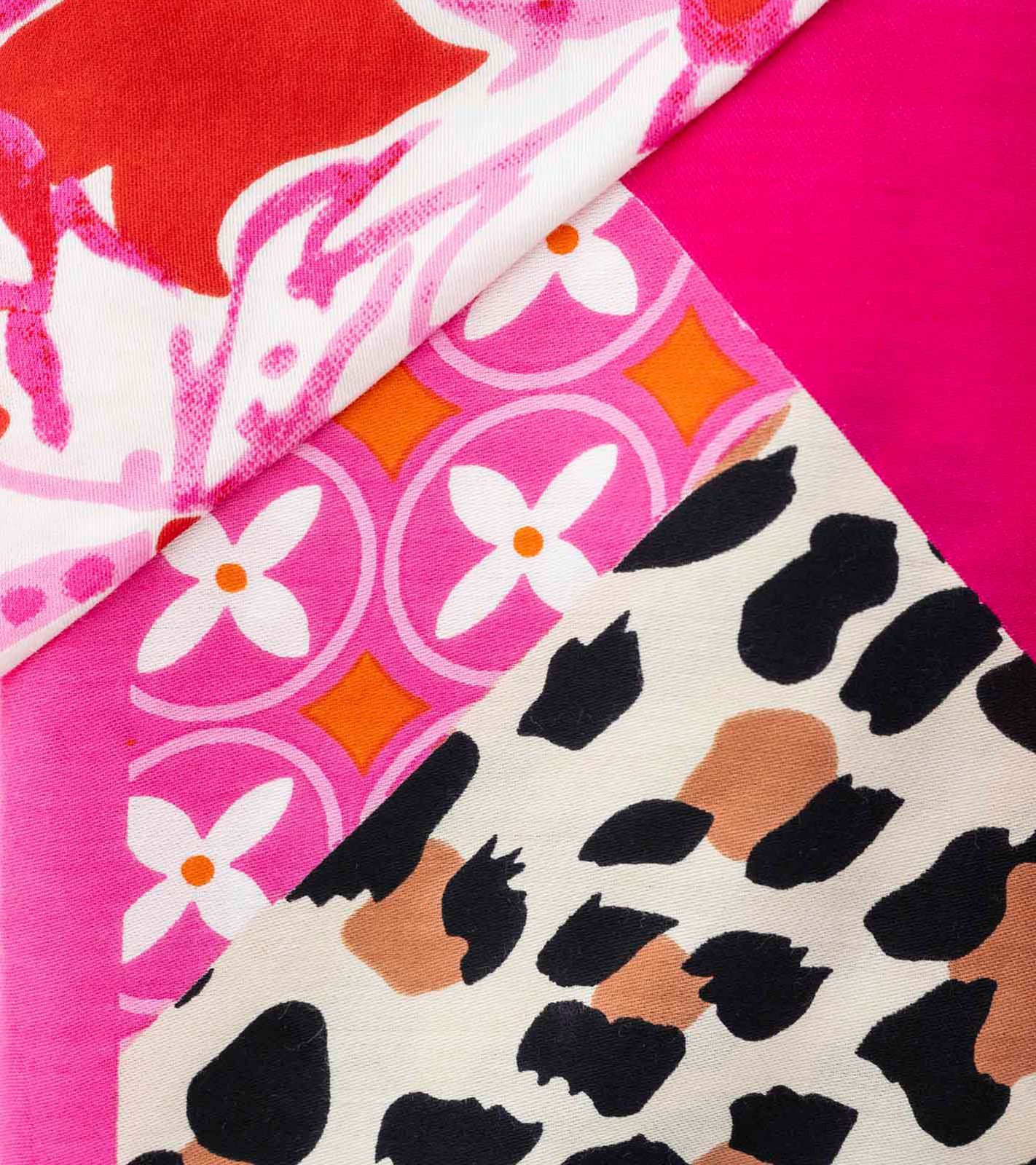 ZWILLINGSHERZ Wild Flower Leopard Triangular Scarf with Animal Print and Flowers, Fashion Scarf 3014D-0204-14 Pink/Multicolored