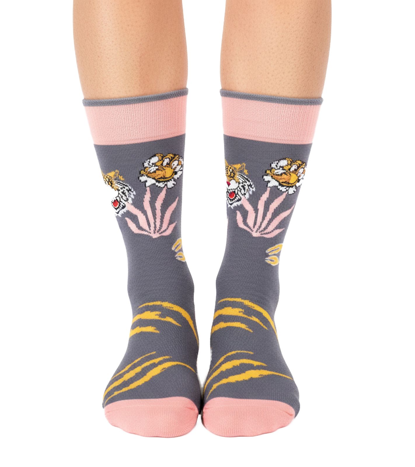 1 par de calcetines de algodón de Bengala color mostaza con estampado de tigre de Bengala calcetines largos 22S-BENGAL gris/rosa