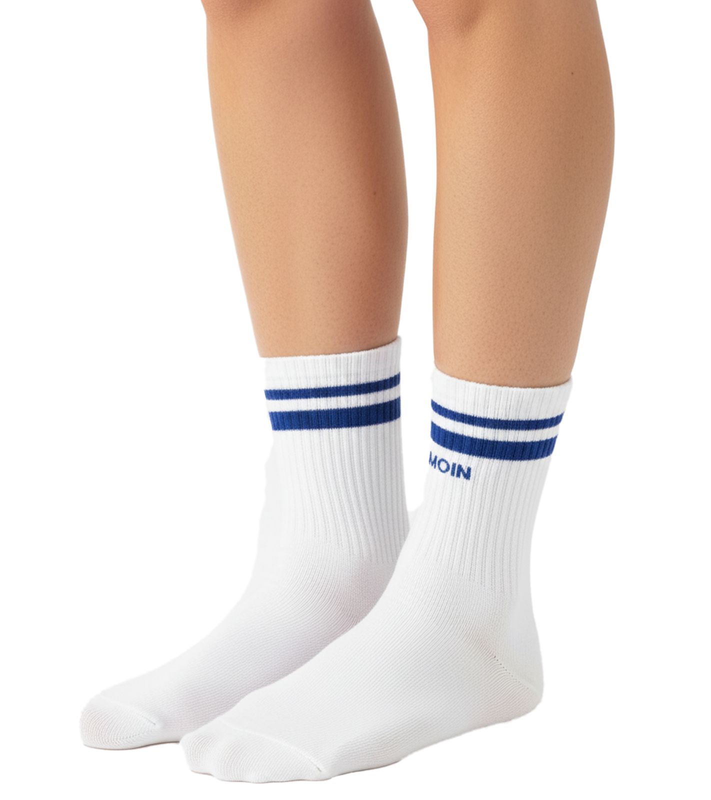 10 pares de calcetines de tenis cómodos para mujer ZWILLINGSHERZ con bordado MOIN, calcetines de algodón para uso diario, modelo 4603S K248142, blanco/azul