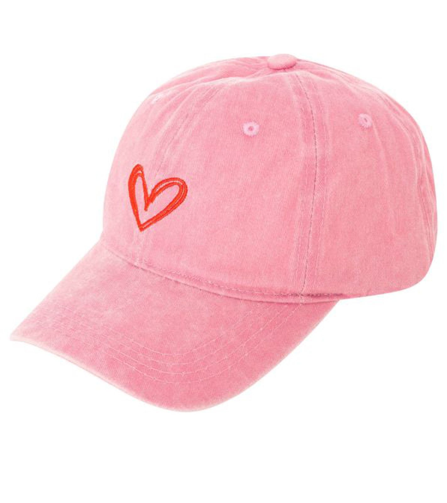 Adorable gorra de béisbol clásica con doble corazón bordado, de algodón, con visera ajustable, 4603M K258208, color rosa empolvado lavado.