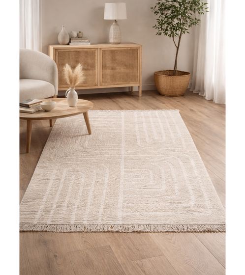 Alfombra Kilim Suave con Flecos, Alfombra para Sala de Estar, Accesorio para el Hogar, Alfombra de Algodón, Alfombra Decorativa 903706 Beige