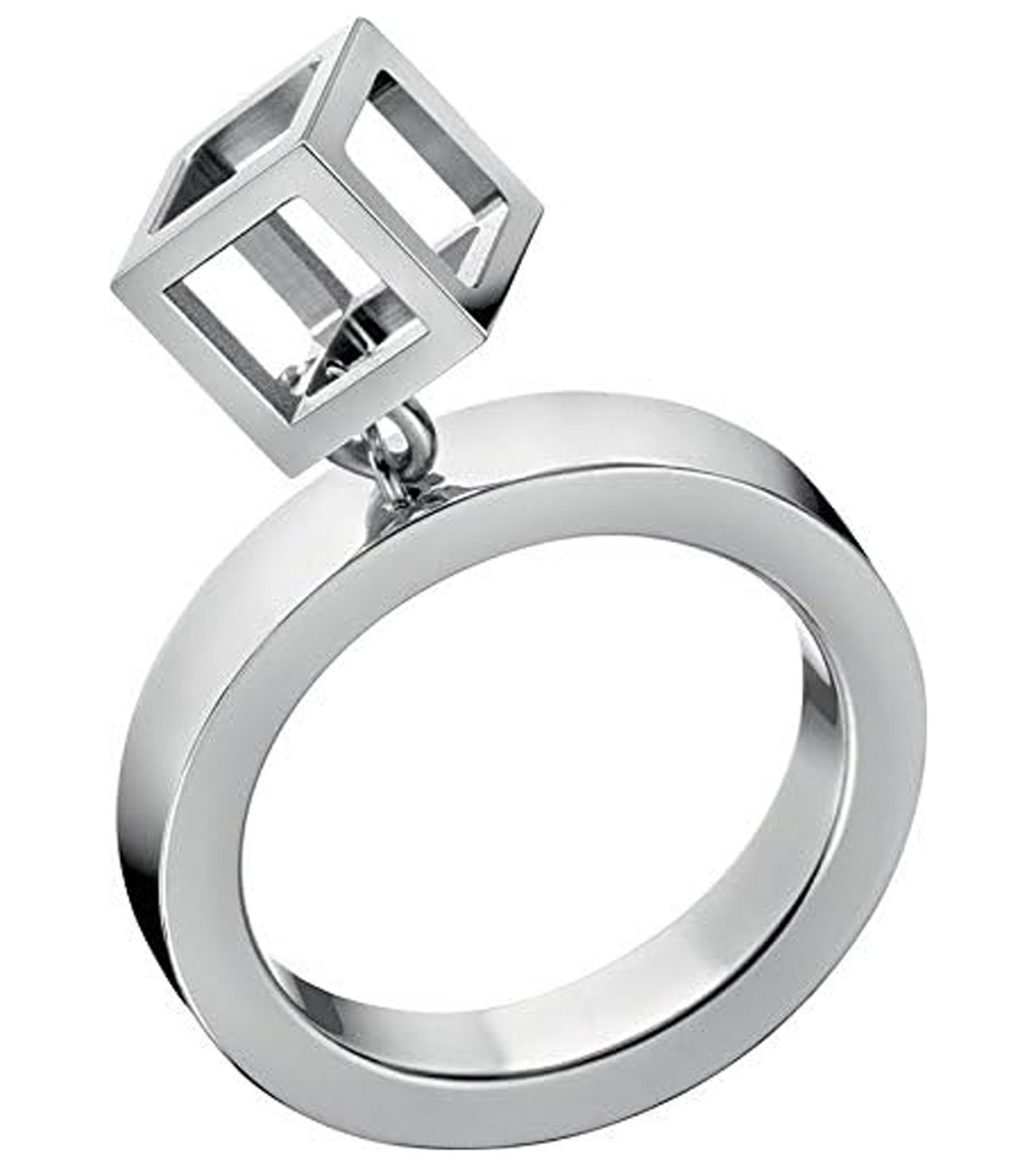 Anello da donna Calvin Klein Timeless con ciondolo a cubo, in acciaio inossidabile, taglia 6, KJ3HMR00010, argento