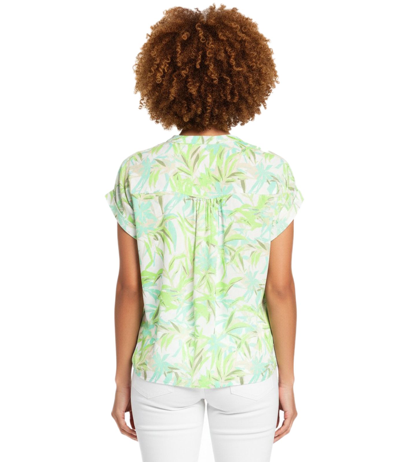Blusa BOYSEN'S para mujer con estampado tropical integral, manga corta, 92863843, verde/blanco/gris