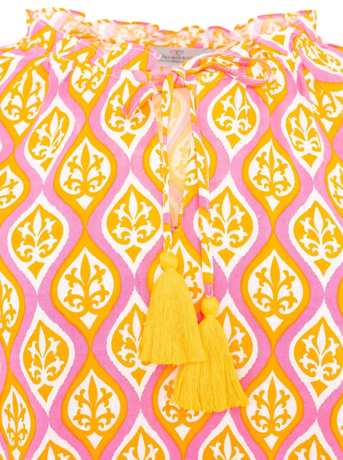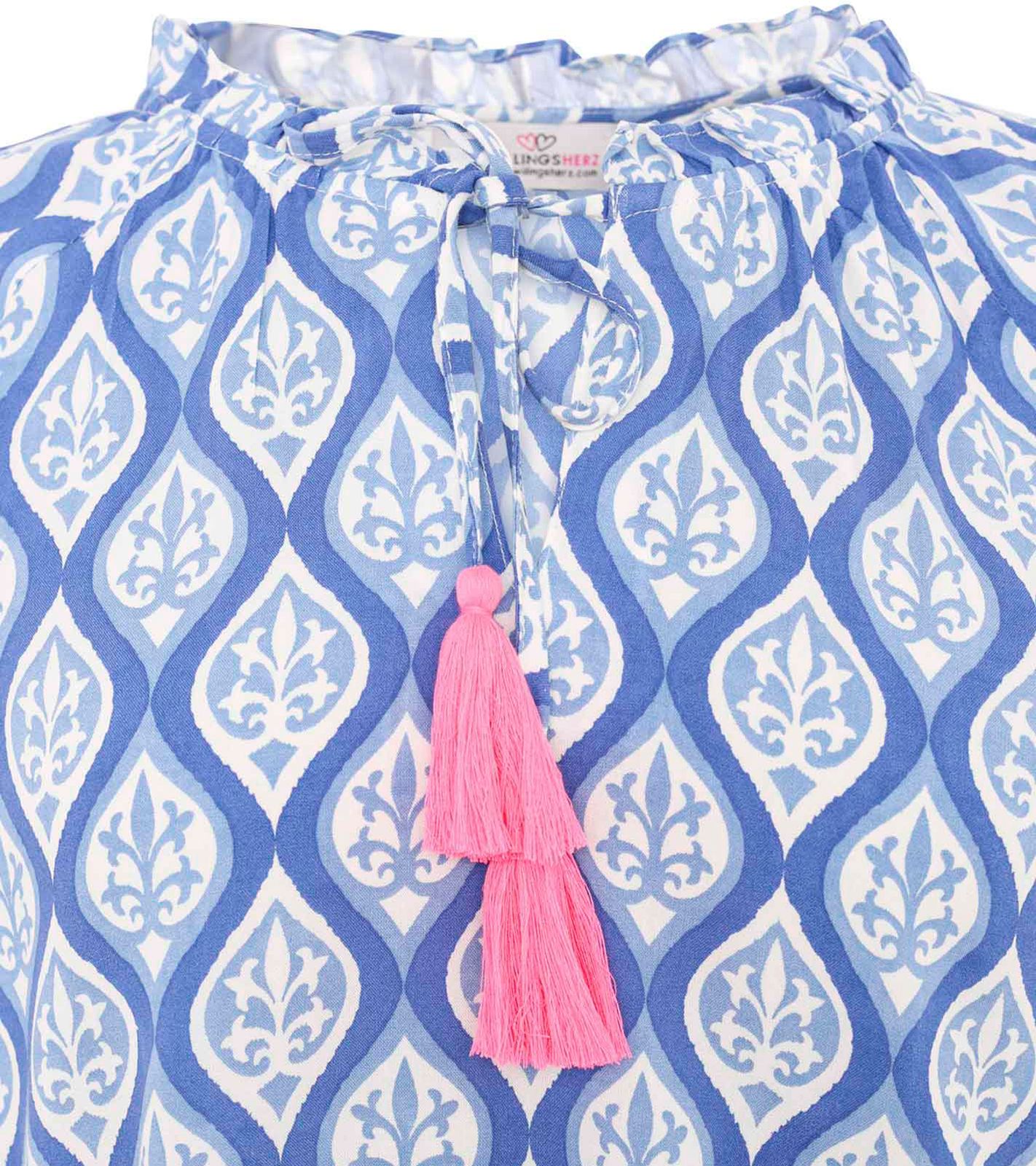 Blusa de verano de algodón para mujer ZWILLINGSHERZ con estampado de enredadera ovalada 33246 Naranja/Rosa o Azul/Blanco/Rosa