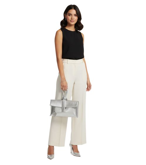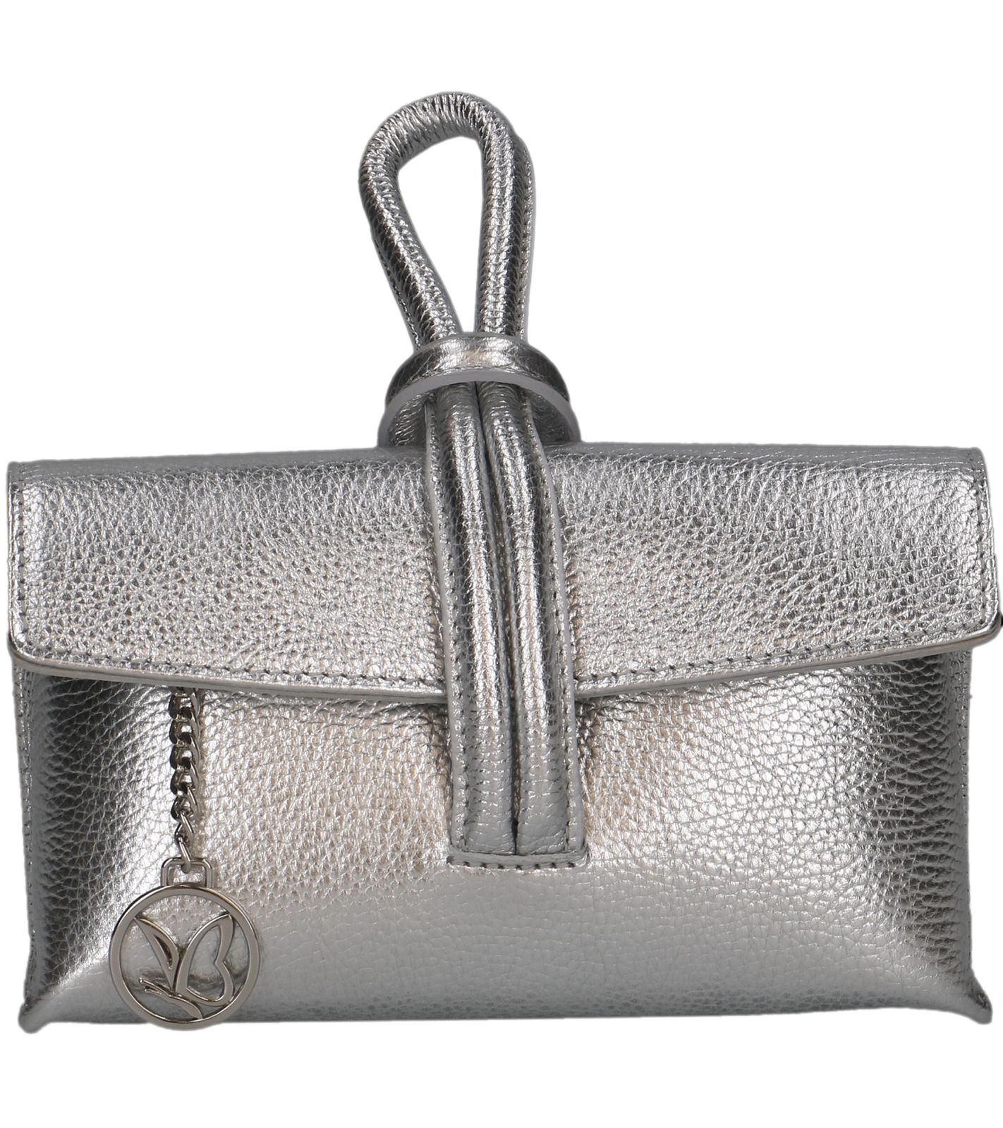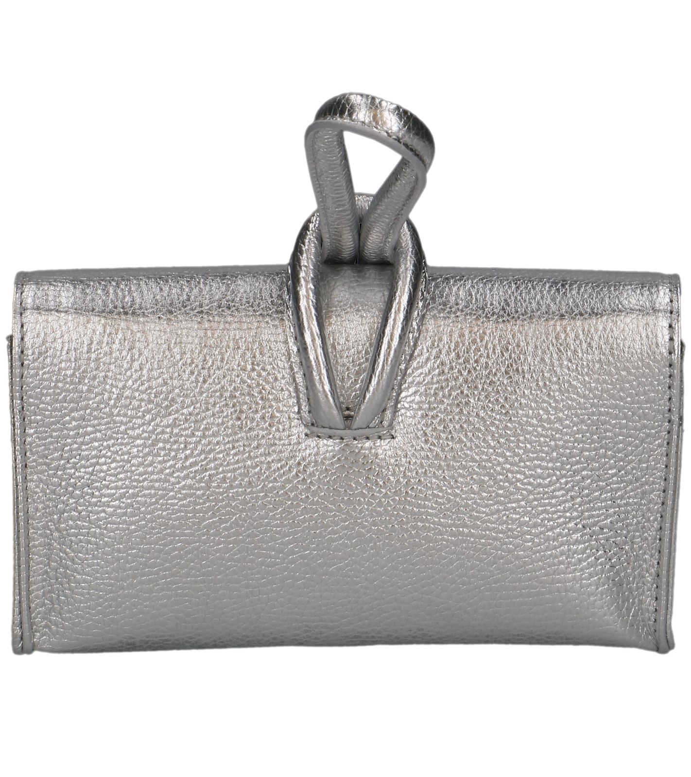 Fabricado en piel auténtica, presenta un moderno cierre de trabilla y un sutil brillo.