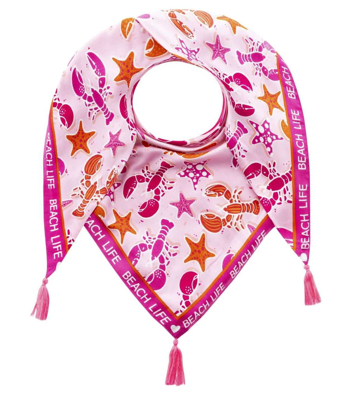 Bufanda triangular ZWILLINGSHERZ Beach Life con cangrejos, estrellas de mar y estampado llamativo, 3014D-0703-22 rosa/rosa