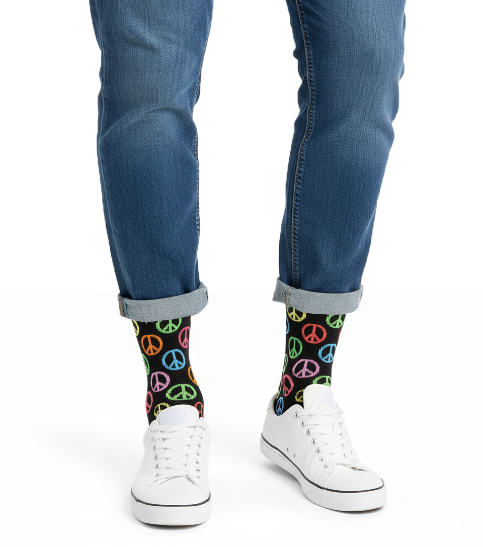 Calcetines Happy Socks para hombre con estampado integral de la paz, calcetines de algodón, calcetines para uso diario P000729 Negro/Multicolor