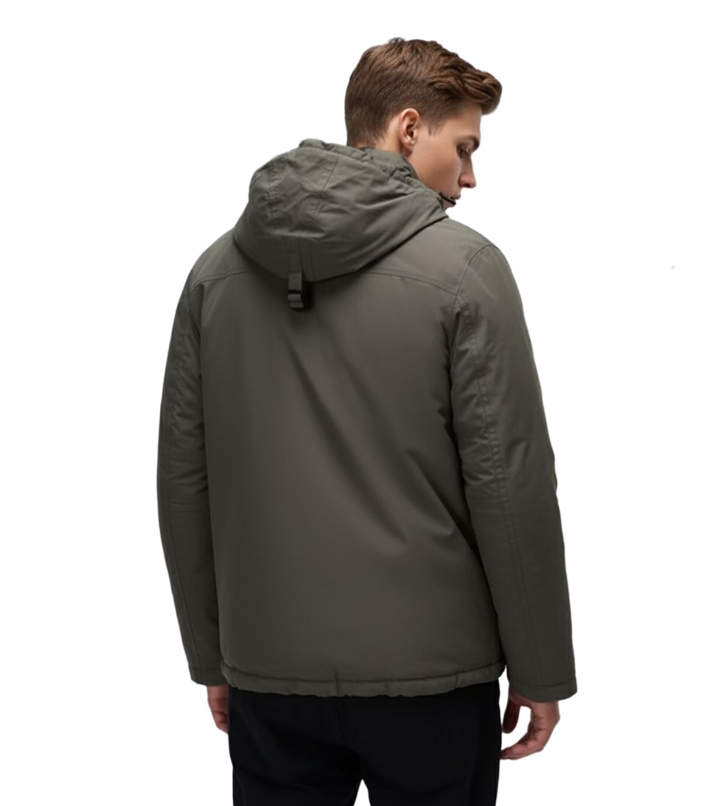 Esta chaqueta para hombre es de estilo anorak, lo que significa que se pone por la cabeza como un suéter.