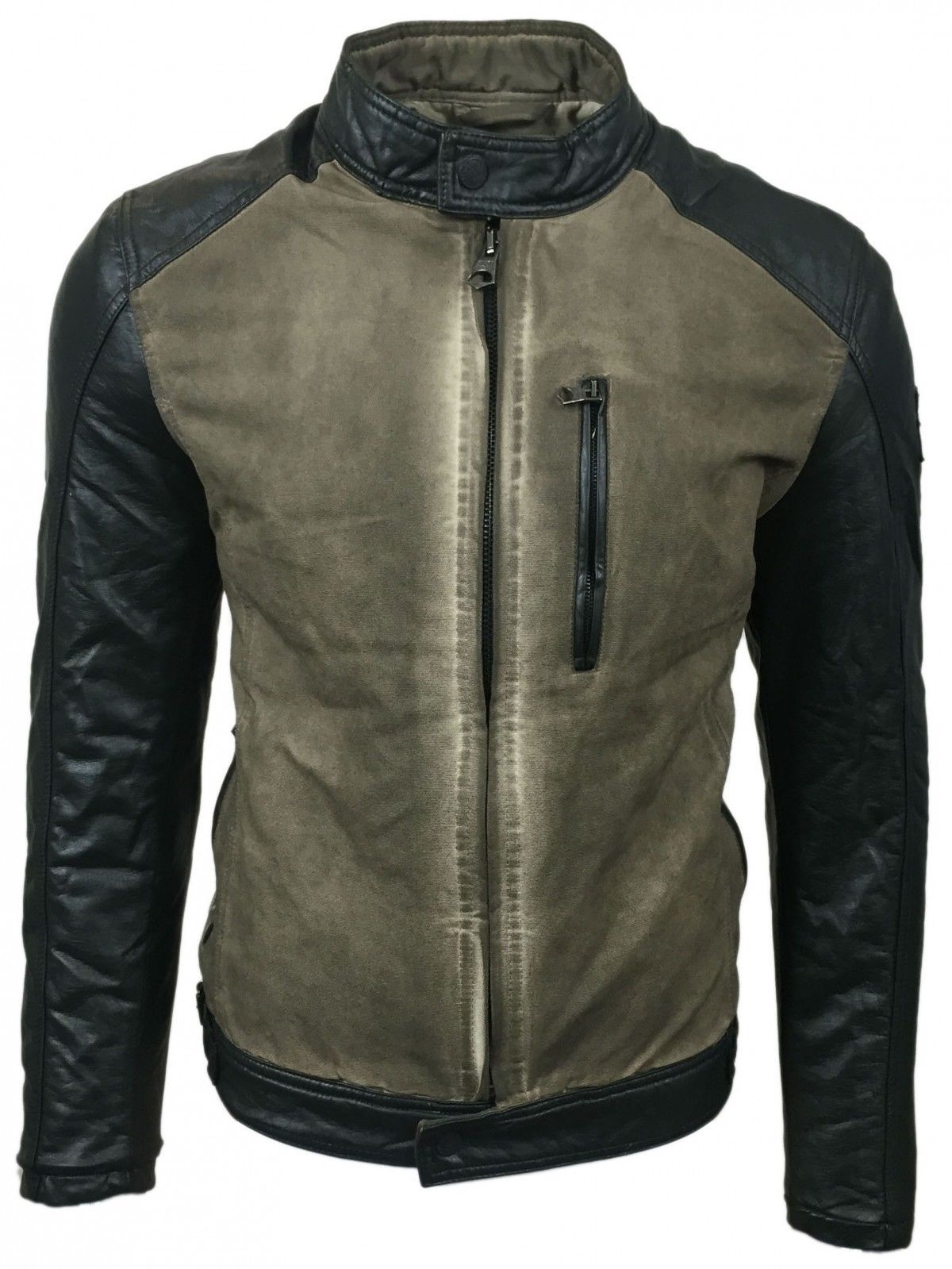 Chaqueta biker urbana para hombre, efecto lavado, mangas de piel sintética, corte entallado, 8835 Beige
