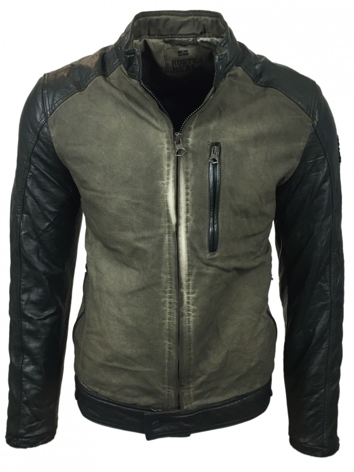 Chaqueta biker urbana para hombre, look lavado con mangas de piel sintética, corte entallado, chaqueta de transición 8835 Caqui